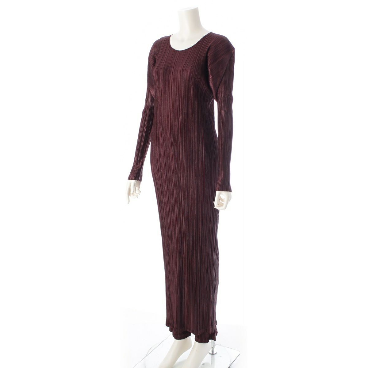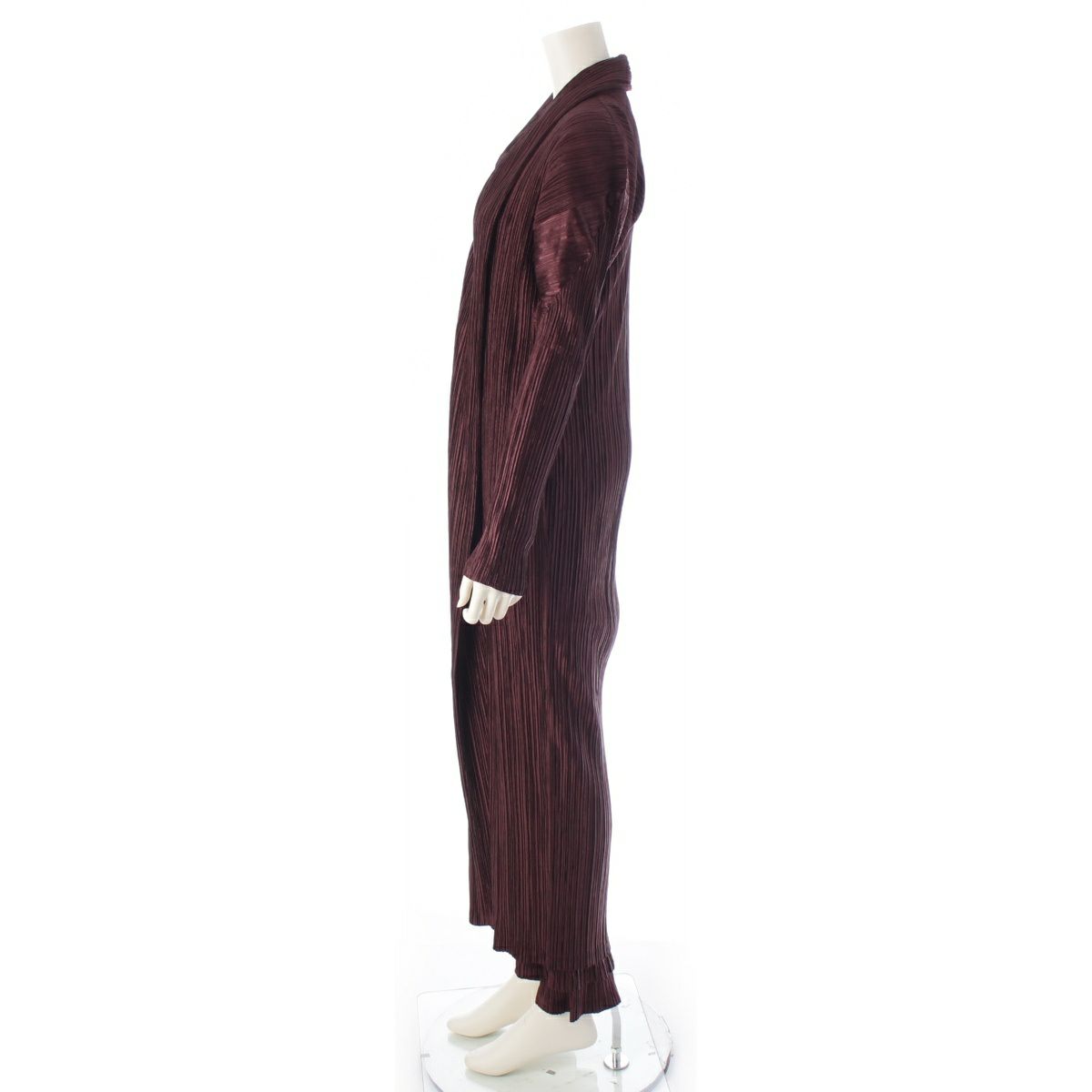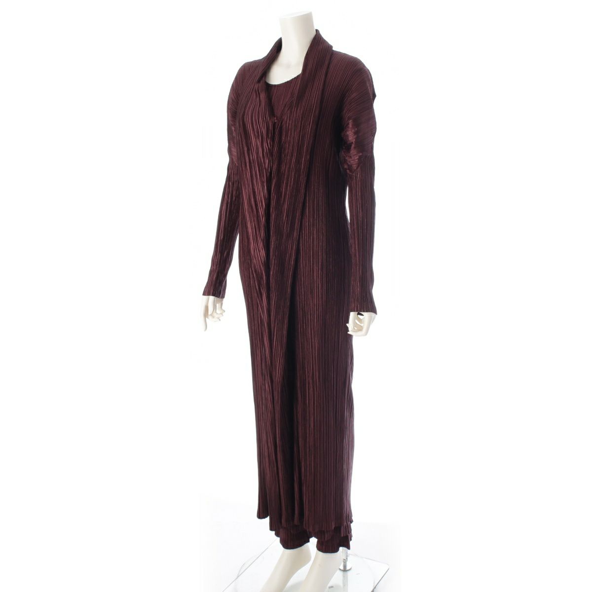 イッセイミヤケ 1998年 ヴィンテージ プリーツデザイン ロング 3ピース セットアップ カーディガン ワンピース パンツ IM82-JA601/JH602/JF601 ダークブラウン L