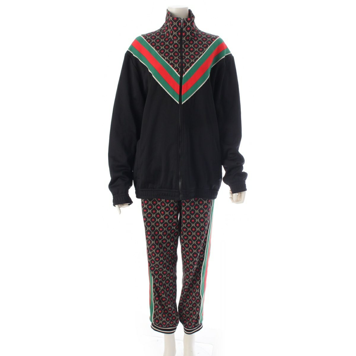 グッチ GG シェリーライン ジャージ パンツセットアップ トップス 575735 575734 ブラック×レッド×グリーン S