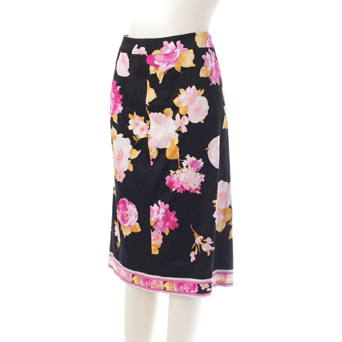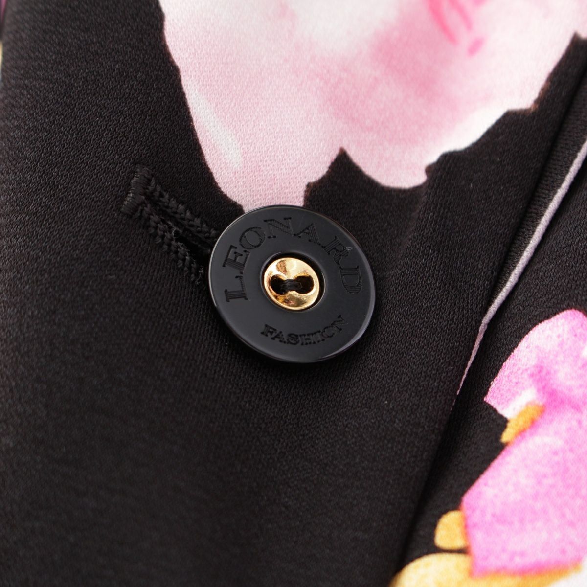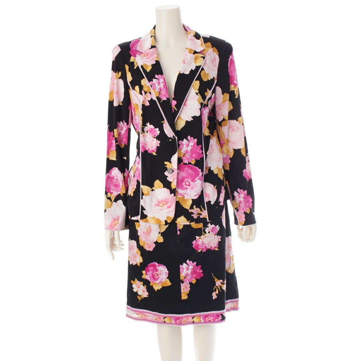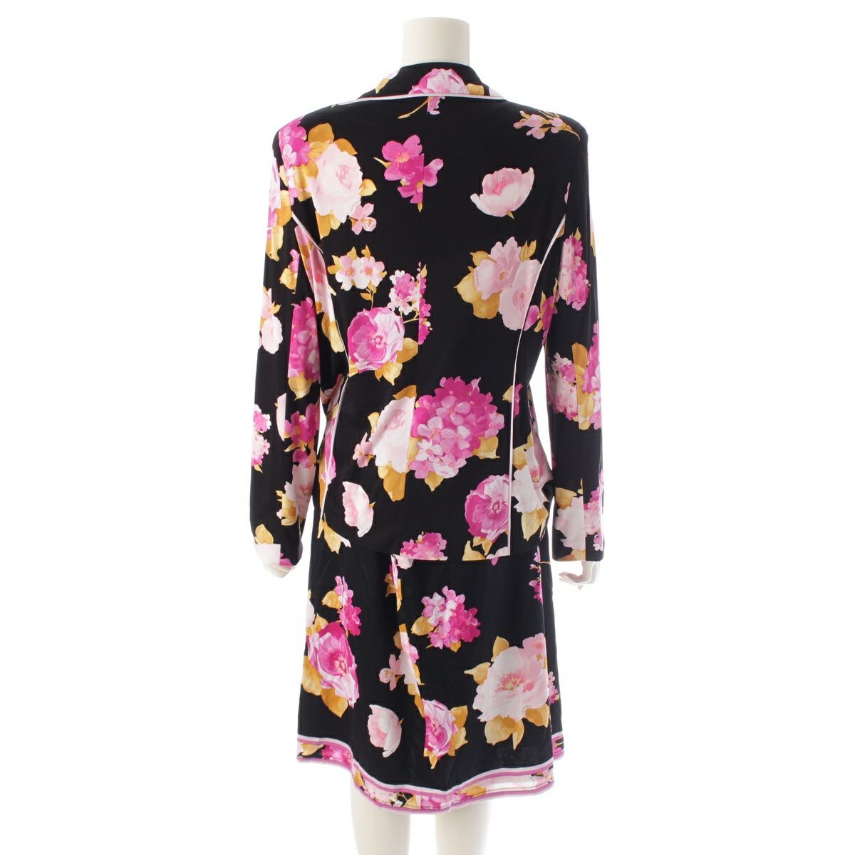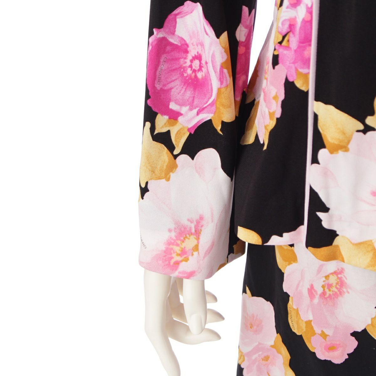 レオナール ファッション カンカン素材 ジャケット 花柄 フラワー スカートセットアップ ブラック 42