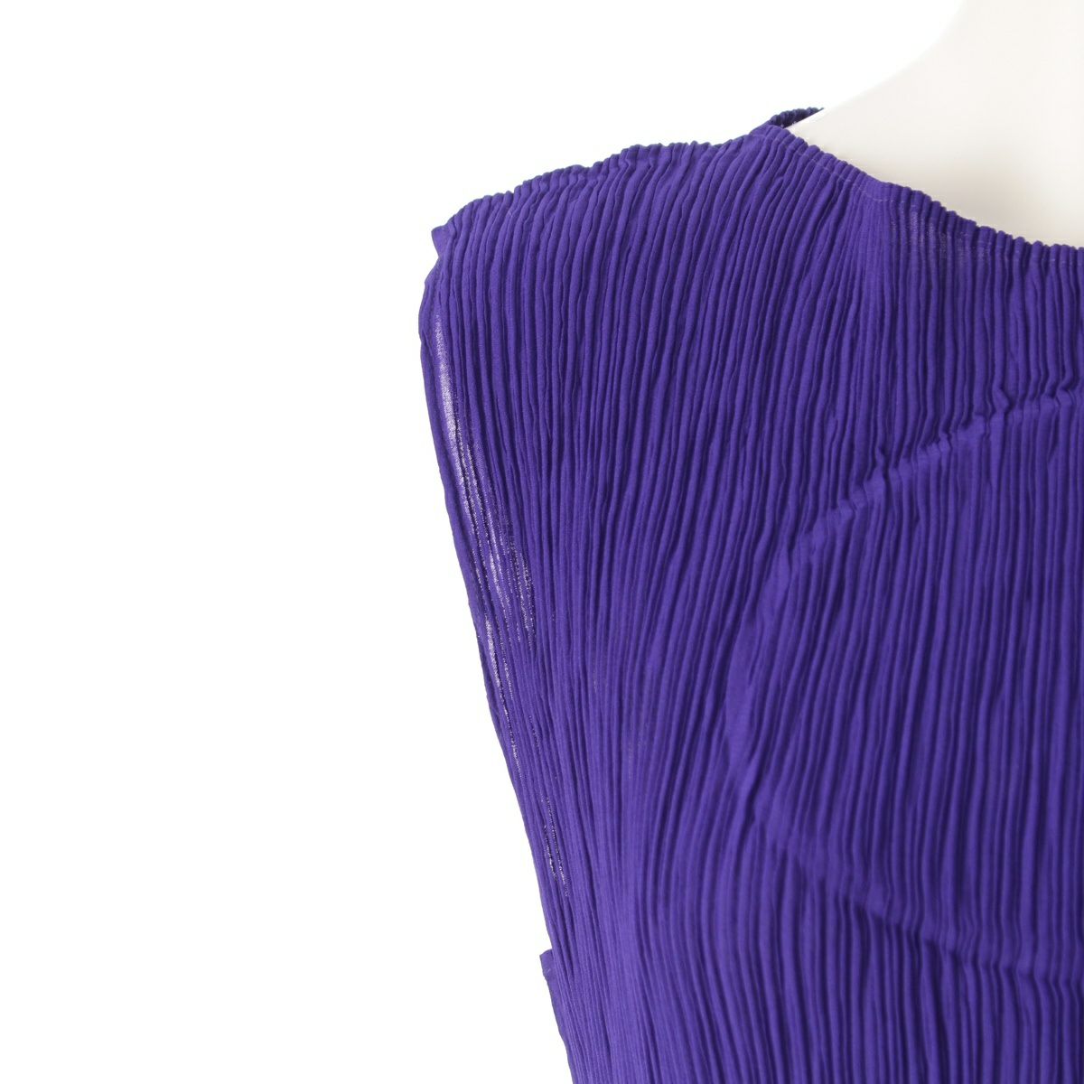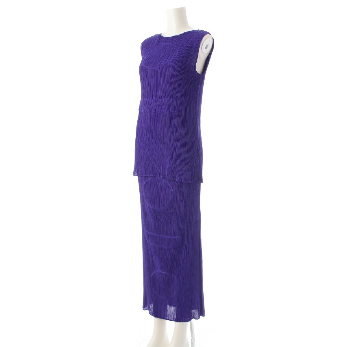 イッセイミヤケ 1999AW プリーツ ドット ラウンド スクエア エンボス ノースリーブ トップス スカートセットアップ IM94-FJ915/IM94-FG910 パープル L