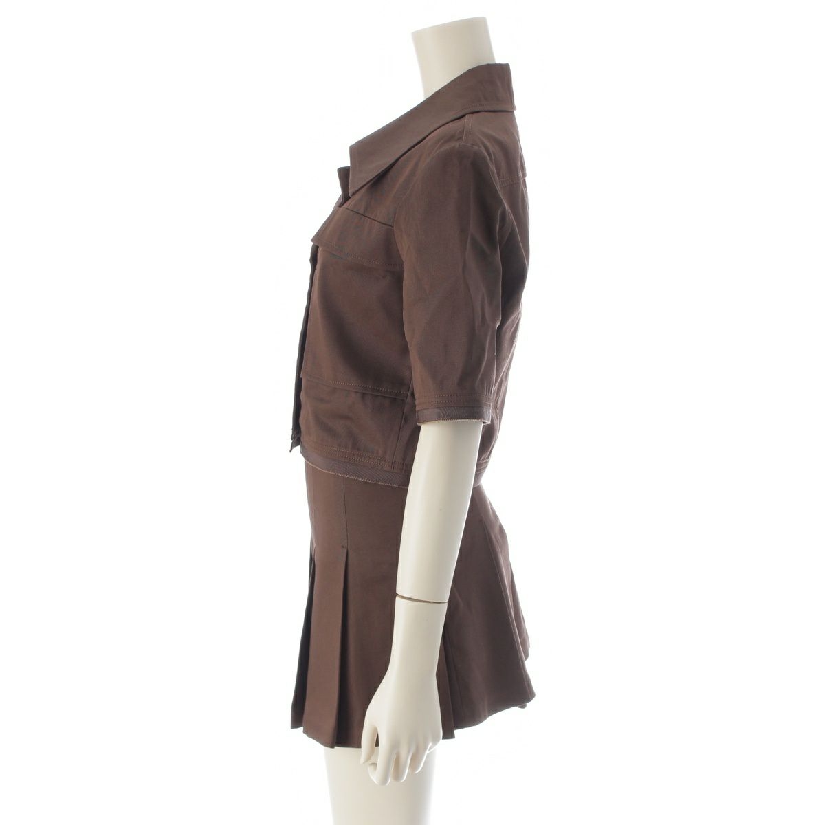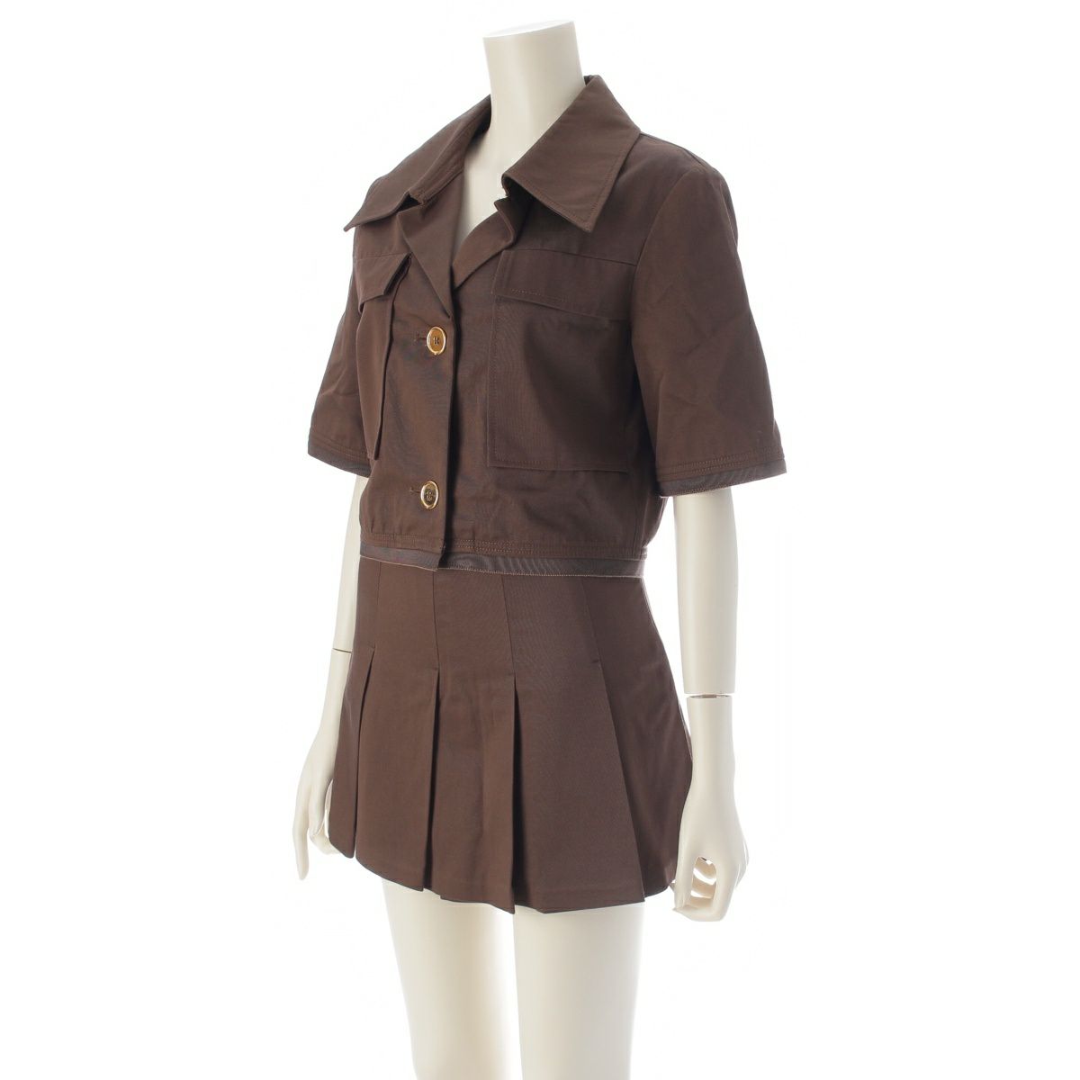 パトゥ 25SS コットン ギャバジン クロップドジャケット スカートセットアップ ブラウン 34