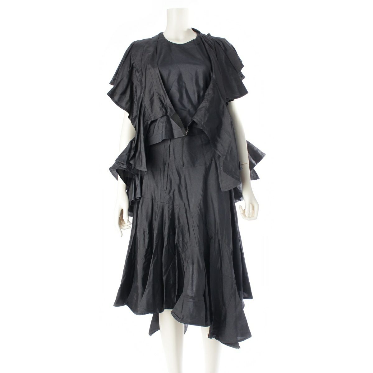 コムデギャルソン 90's NOIR ノワール シルク フリル 変形 シルク 襟付き 3P スカートセットアップ ブラック M