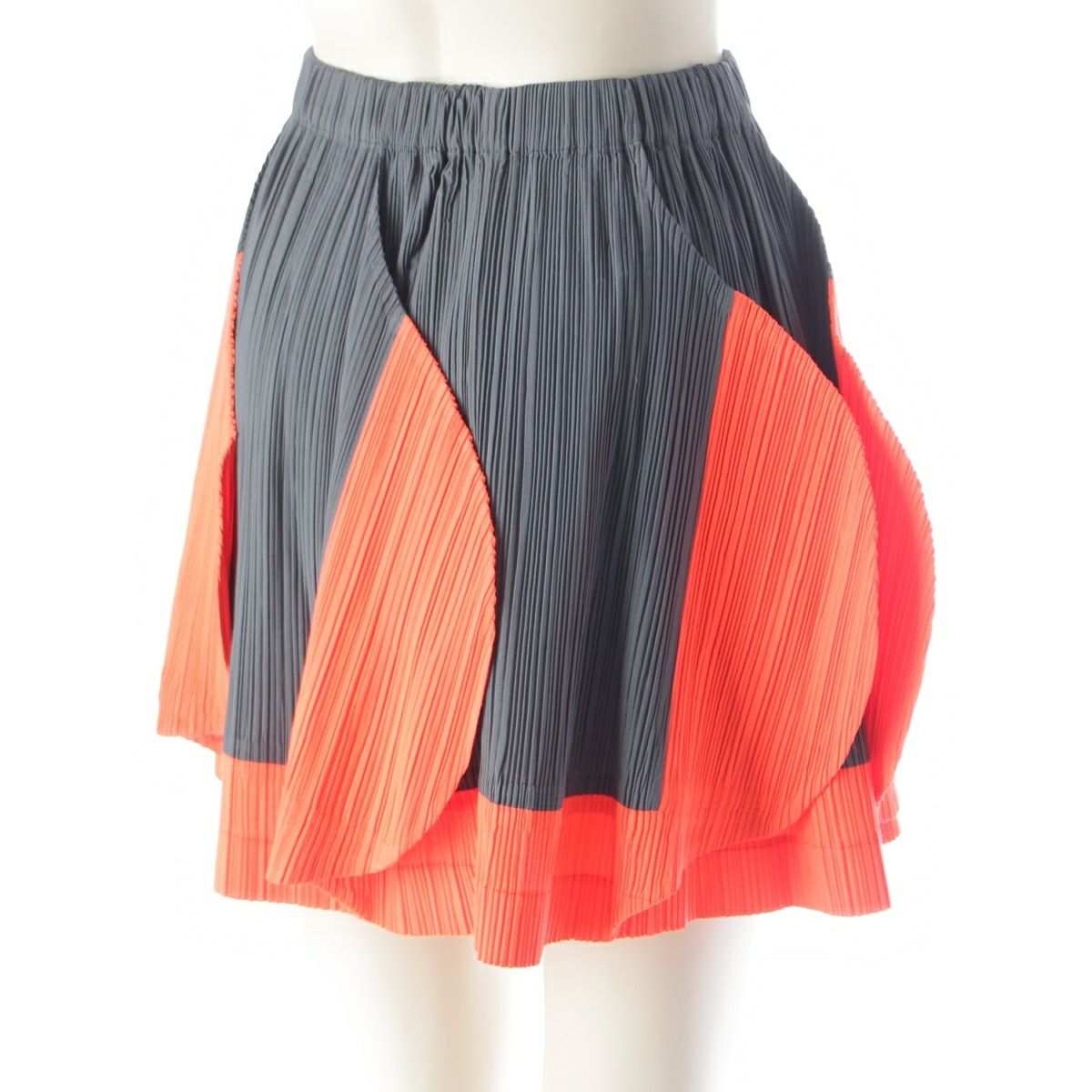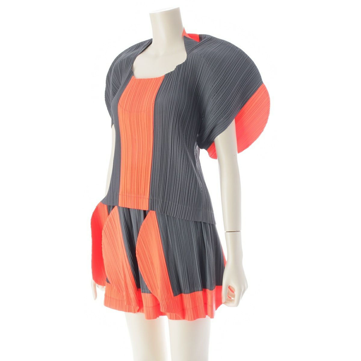 イッセイミヤケ 90s 91SS CURVED PLEATES カーブ プリーツ ラウンド スカートセットアップ オレンジ チャコール M
