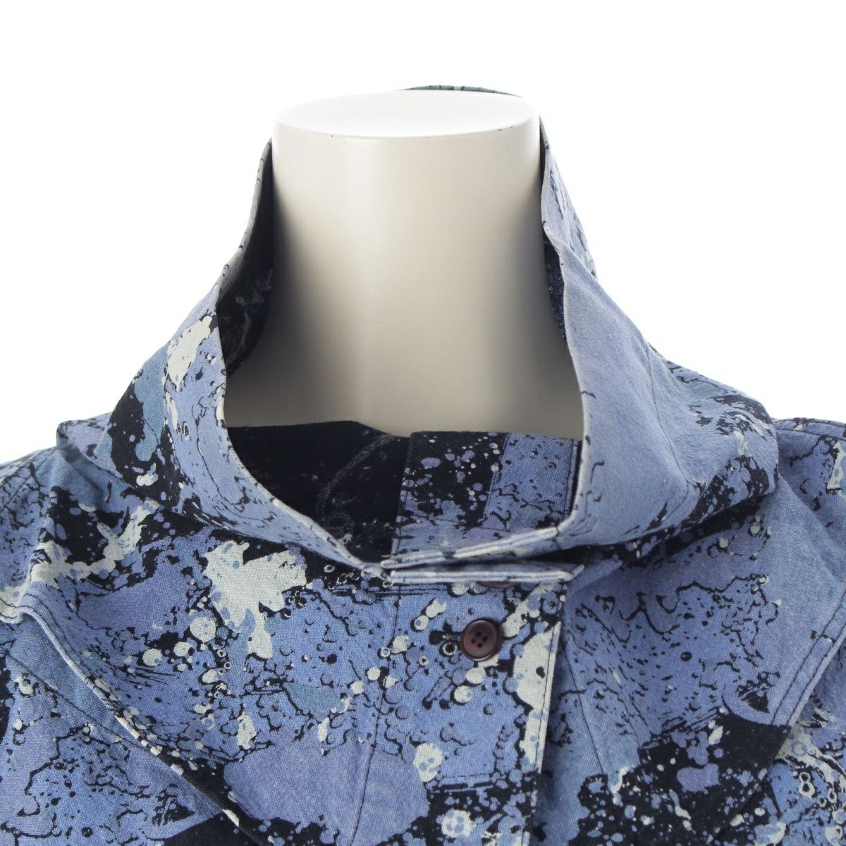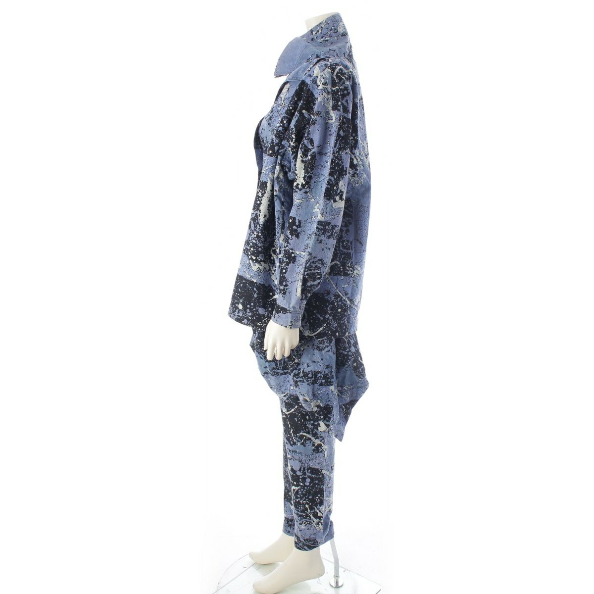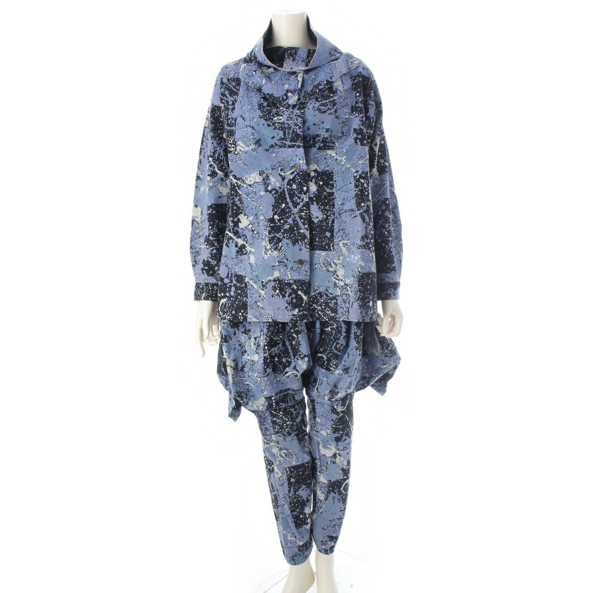 イッセイミヤケ 80s 1983年 筆タグ 総柄 スパッタリング 変形襟 シャツ サルエル パンツセットアップ MA13203 MA43153 ブルー 9