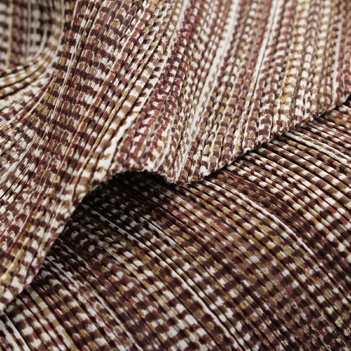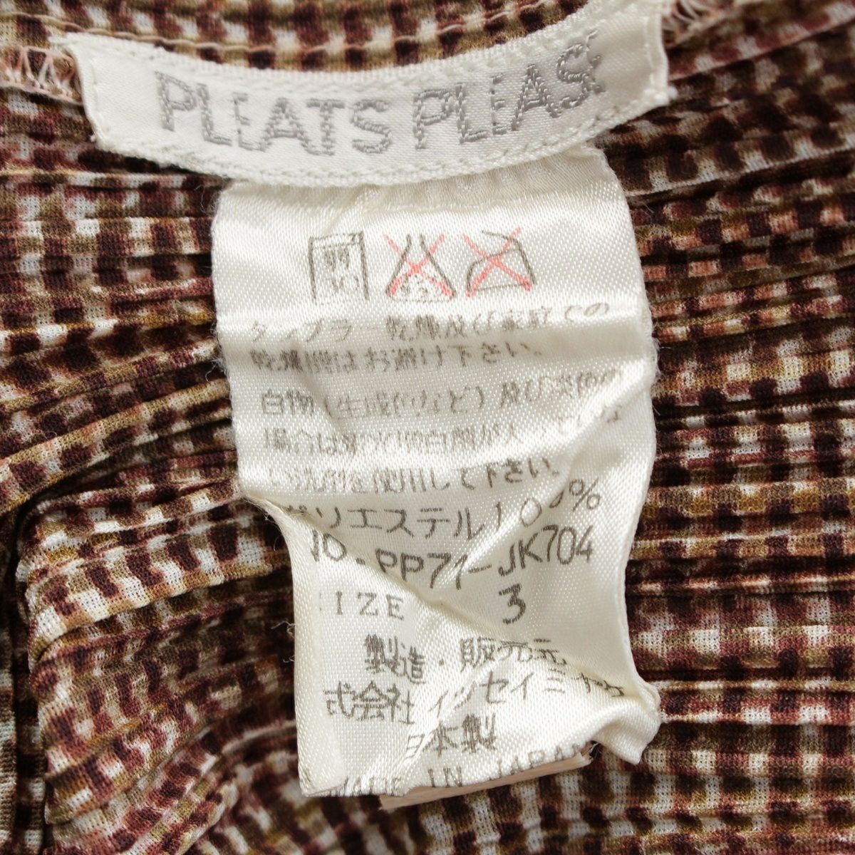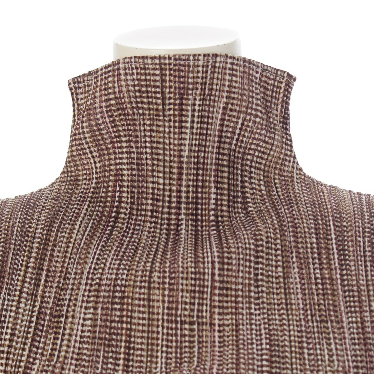 プリーツプリーズ イッセイミヤケ チェック ボトルネック カットソー パンツセットアップ 杢ブラウン系 3