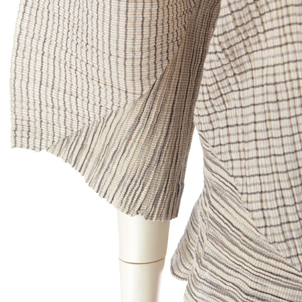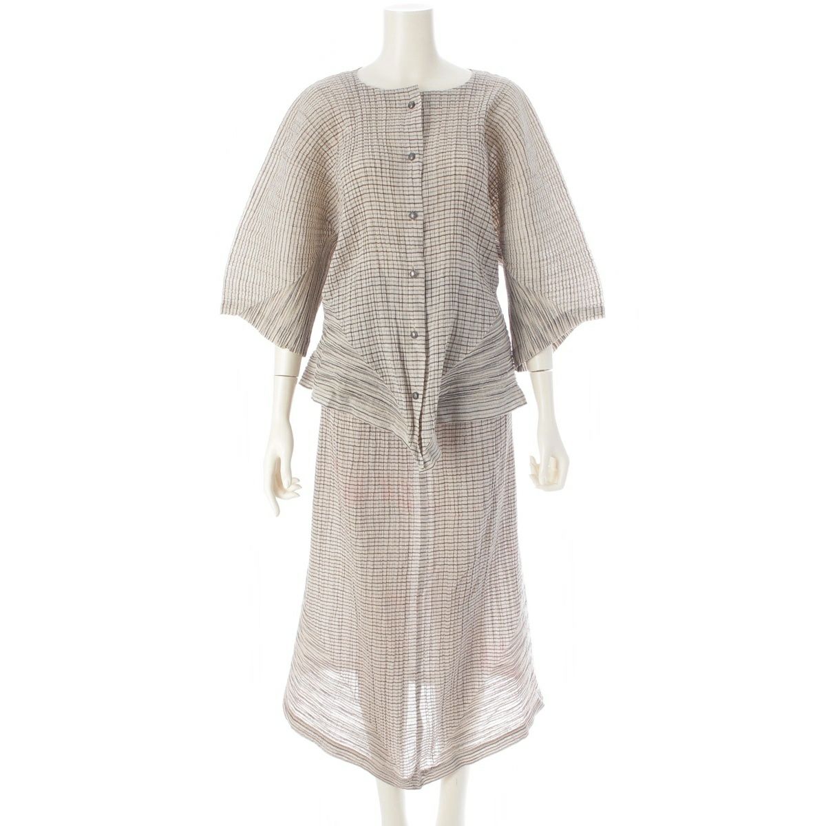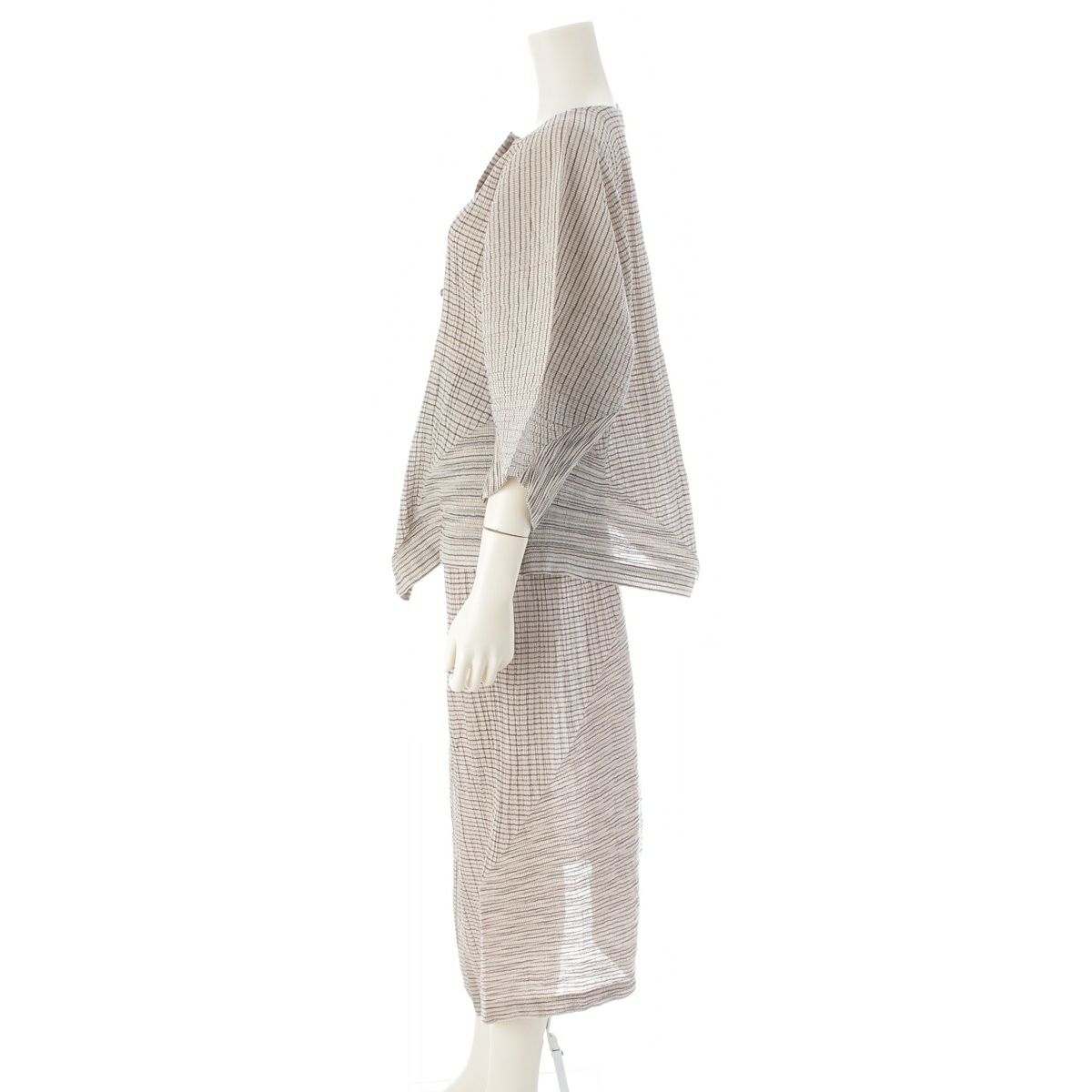 イッセイミヤケ 80s 筆タグ ボーダー トップス スカートセットアップ JG31409/JG51229 ベージュ M