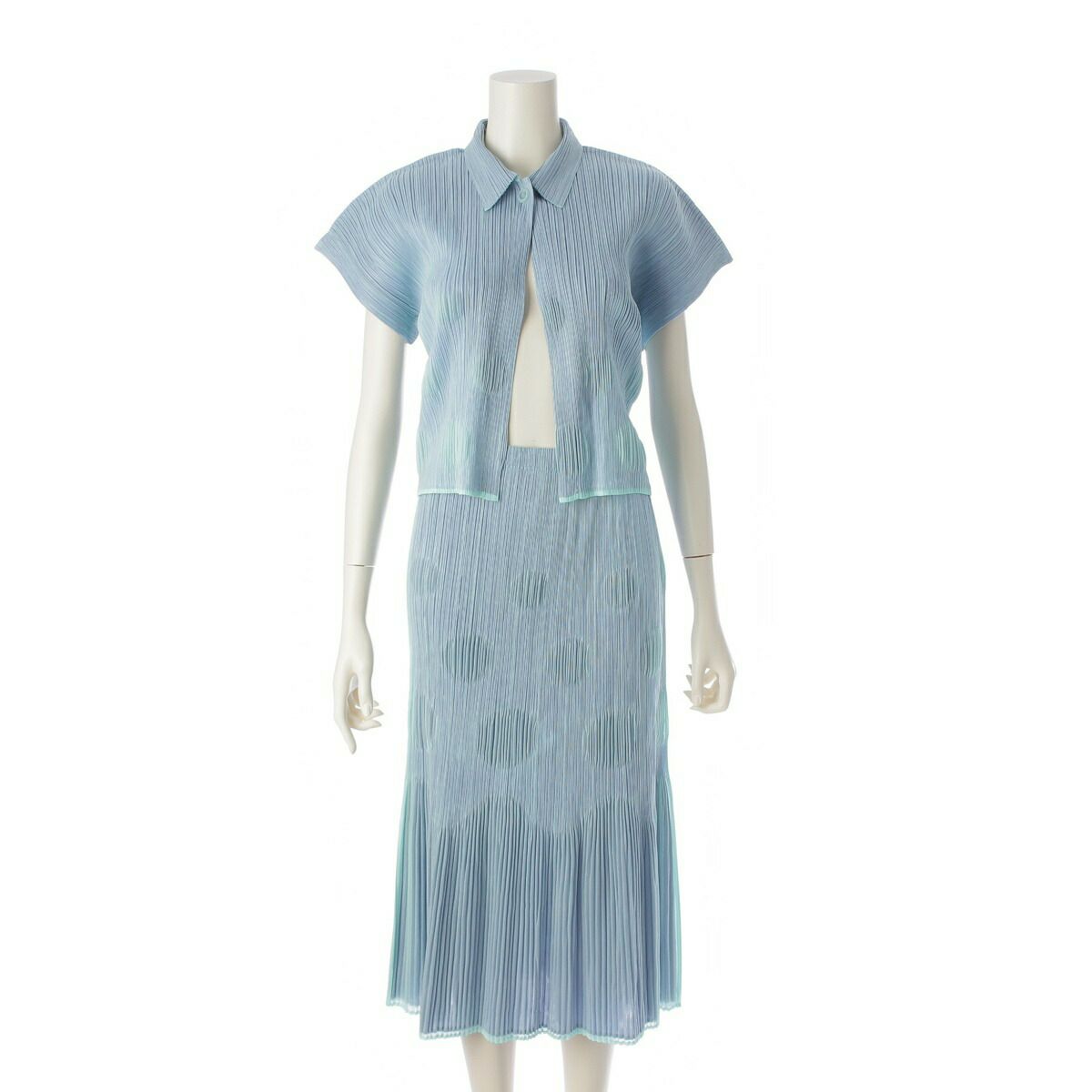 プリーツプリーズ イッセイミヤケ グラデーション ドット フレア プリーツ カーディガン トップス スカート PP81-JG796 PP81-JO794 ライトブルー【中古】【正規品保証】