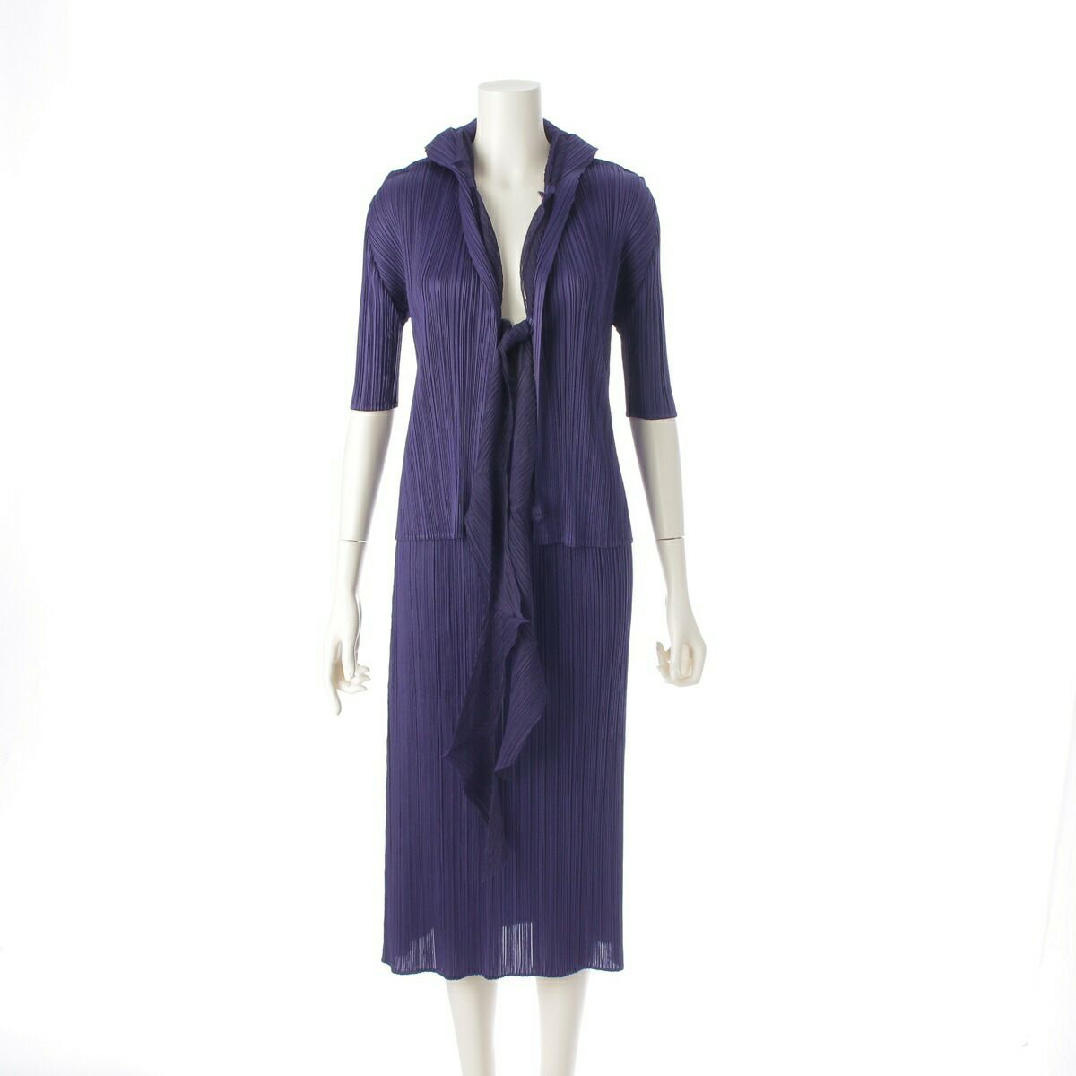 プリーツプリーズ イッセイミヤケ ストール ドッキング ハーフスリーブ セットアップ カーディガン スカートPP71-J0182 PP71-JG186 ネイビー【中古】【正規品保証】