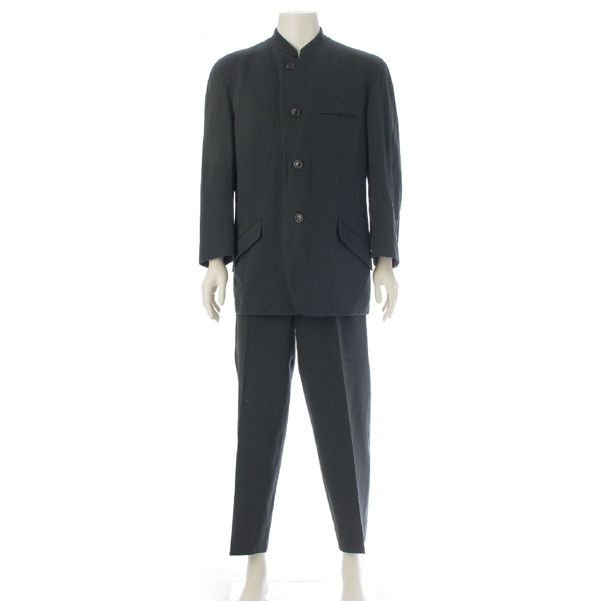 イッセイミヤケ ウール スタンドカラー スーツ パンツセットアップ ジャケット スラックス ME33-FD067 グレー ブラック M