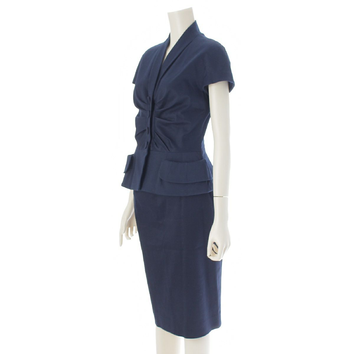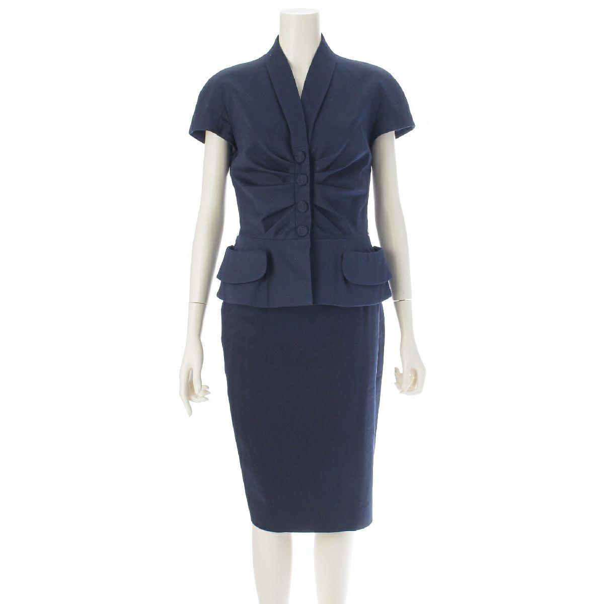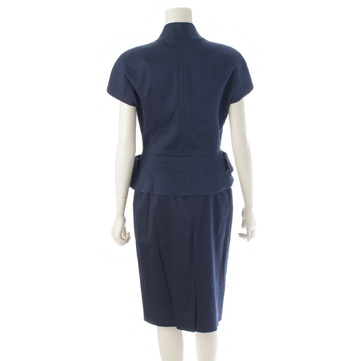 クリスチャンディオール 21年 コットン ペプラム 半袖 スカートセットアップ スカートスーツ 1C21230C1312 ネイビー 36