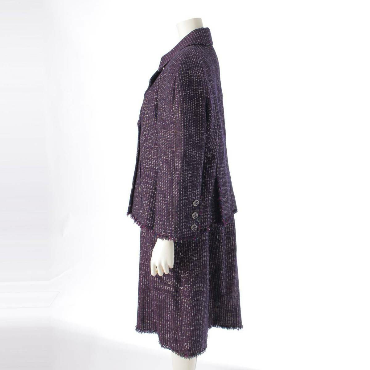 シャネル 08P コットン ウール混 ツイード アンサンブル セットアップ パープル 46