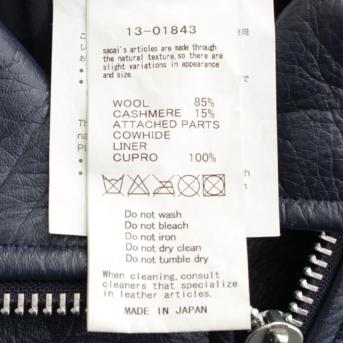 他の画像を見る Sacai サカイ レザー ウール カシミヤ Cowhide Biker Detail Coat ライダースドッキング コート アウター 13-01843 ブルー×グリーン 2 お気に入りに登録する 当店通常価格 ¥ 59,400 のところ 当店特別価格 ¥ 49,500 税込 54,000円 45,000円