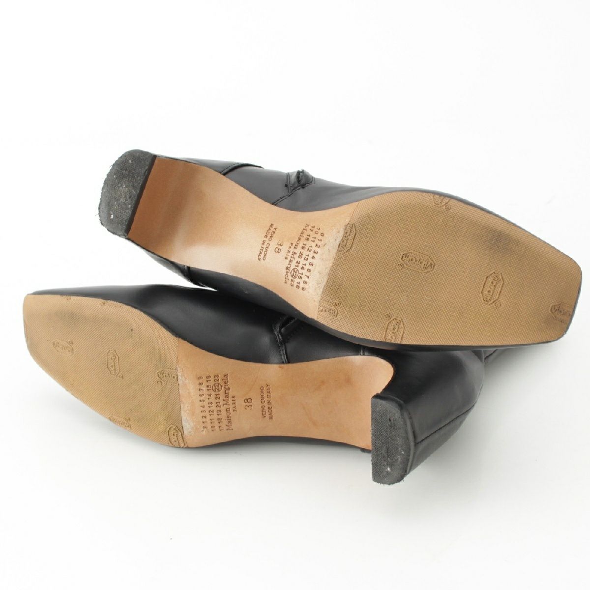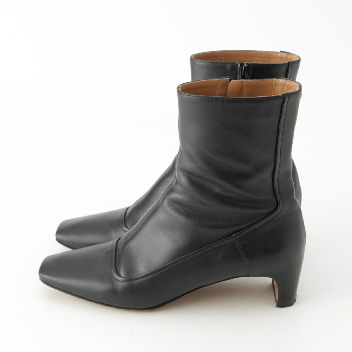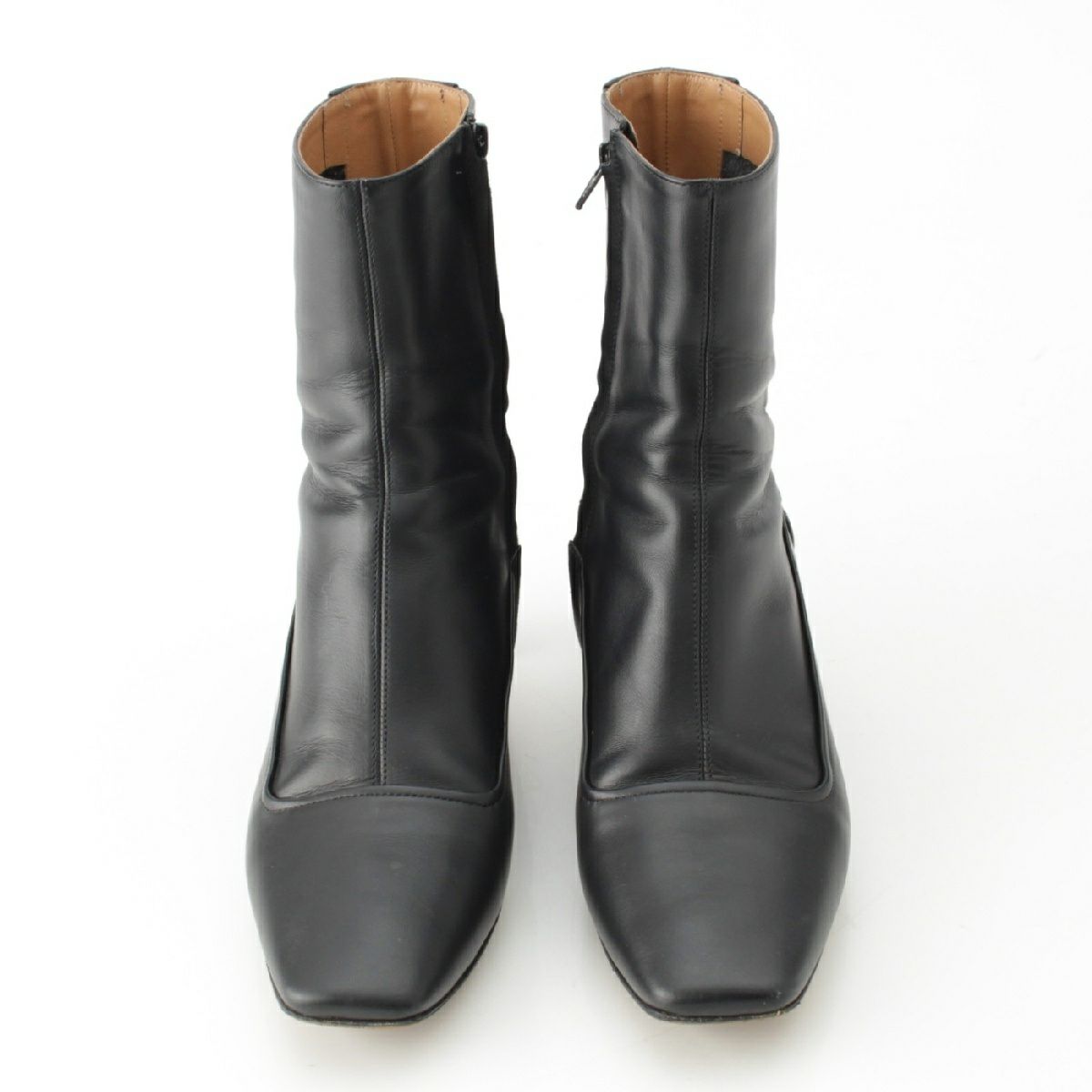 メゾンマルジェラ 22 レザー スクエアトゥ アンクル ショート ヒール ブーツ シューズ S58WU0286 ブラック 38