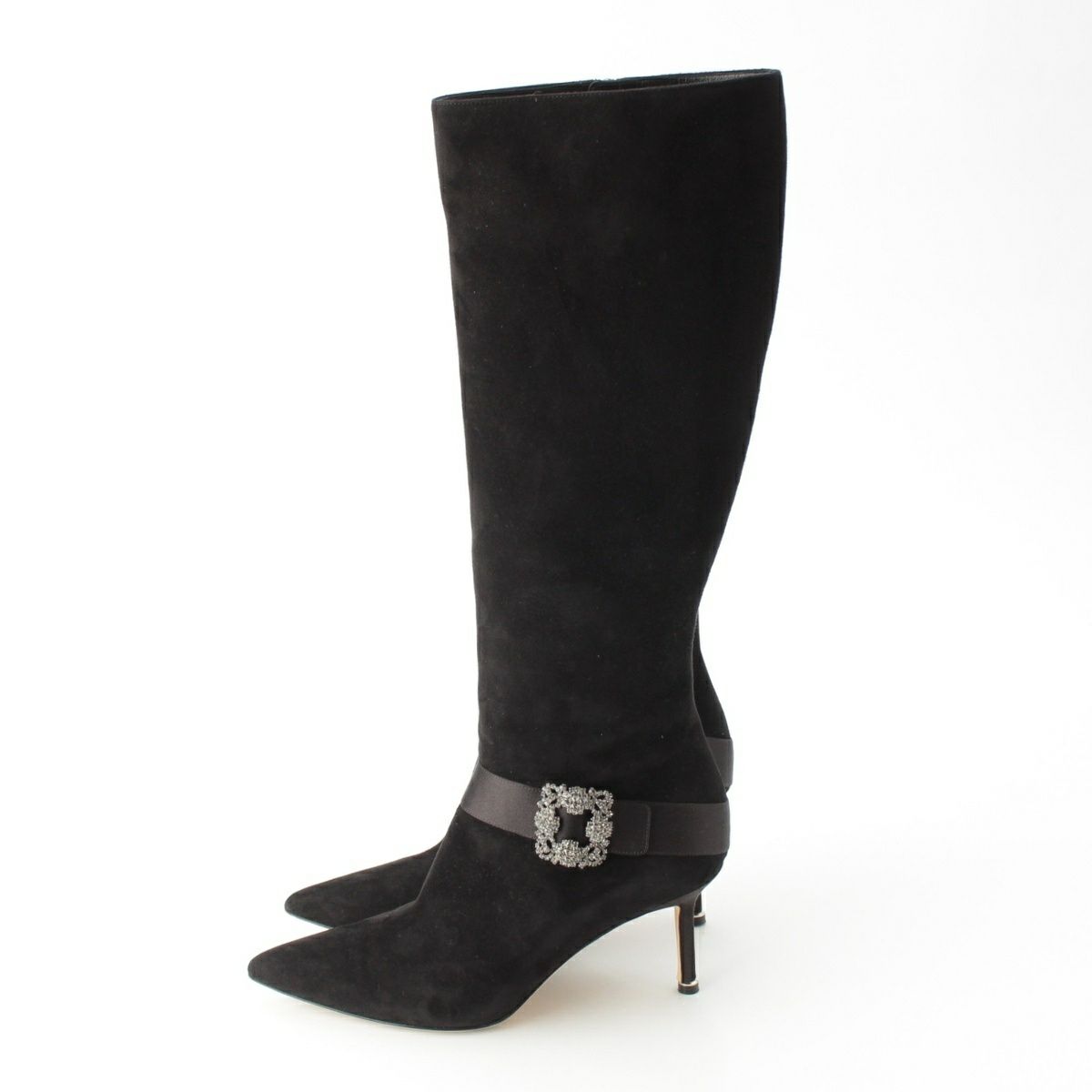 マノロブラニク 24年 スウェード PLINIAHI ジュエルバックル ヒールロング ブーツ ブラック 39