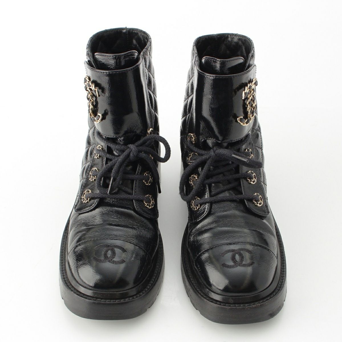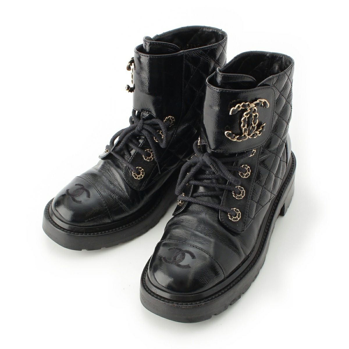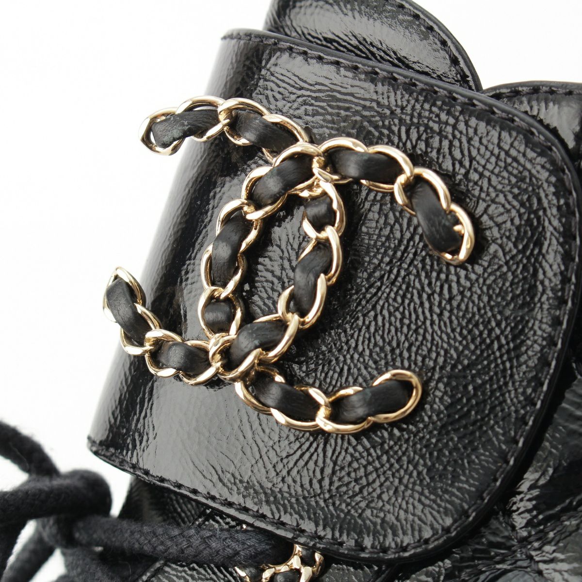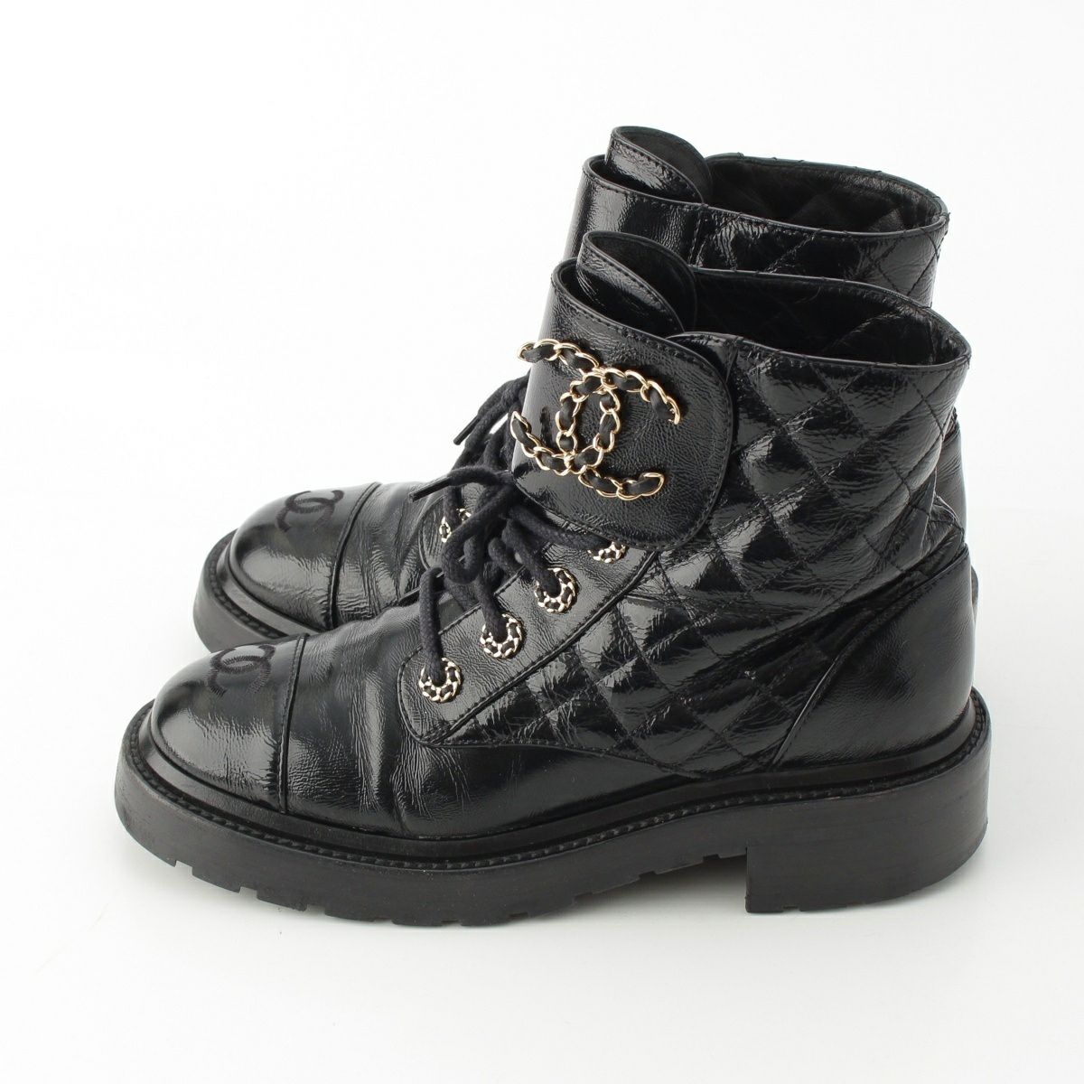 シャネル レザー ココマーク レースアップ マウンテン ショート ブーツ シューズ G36424 ブラック 37.5