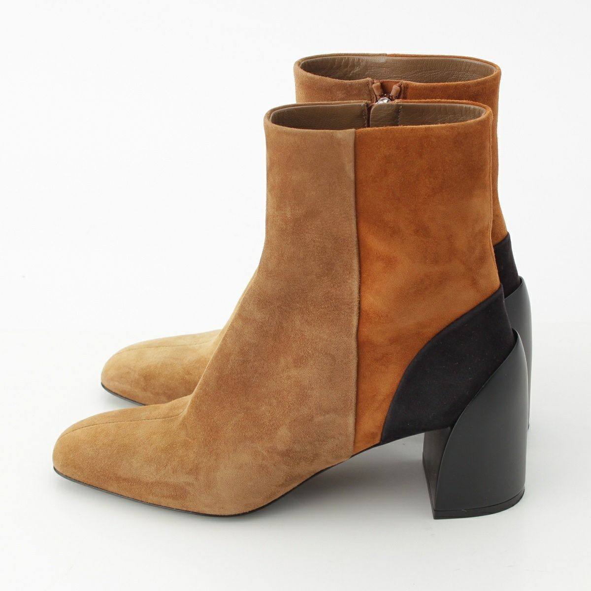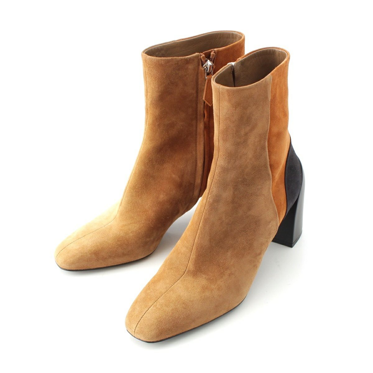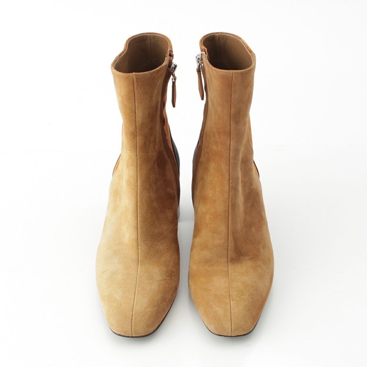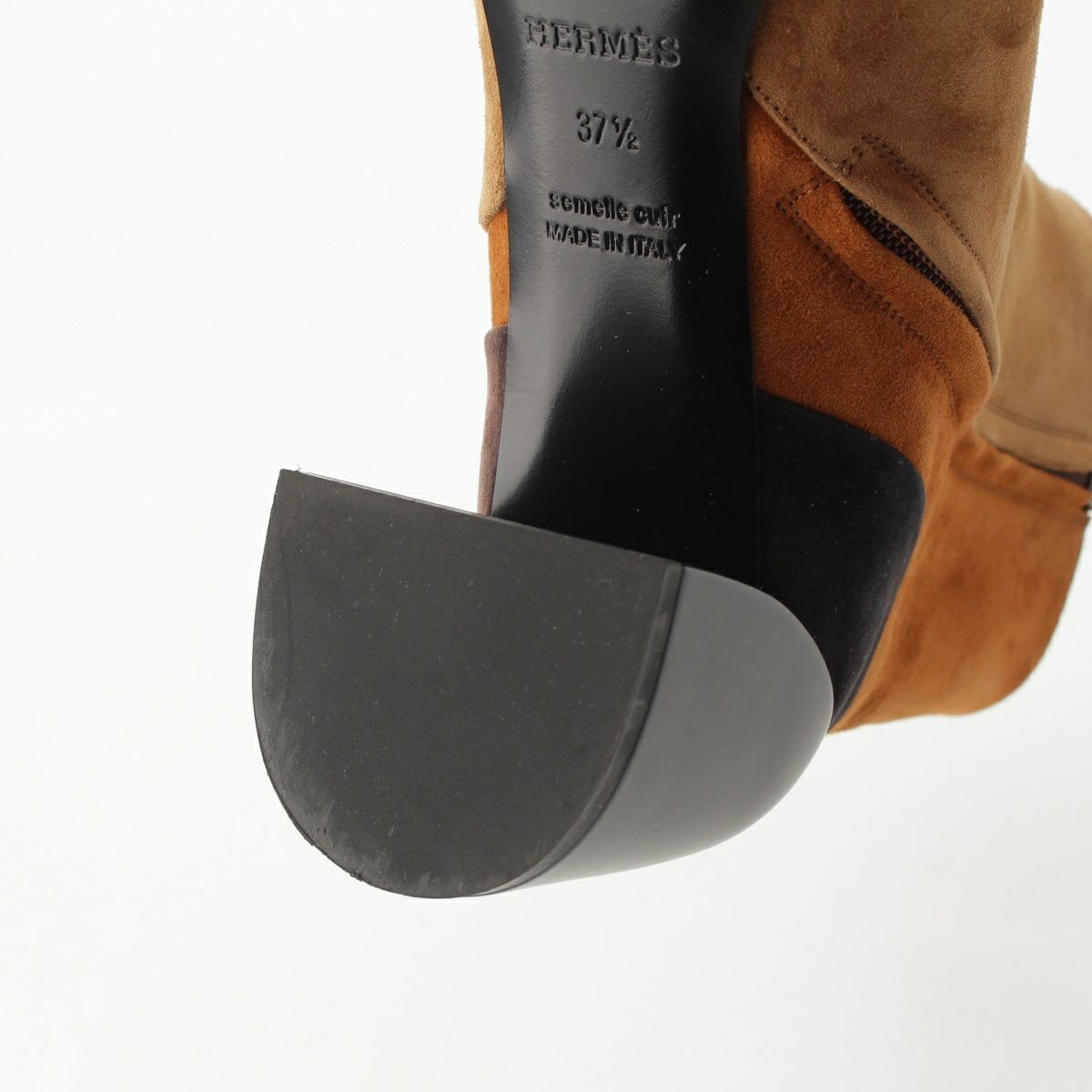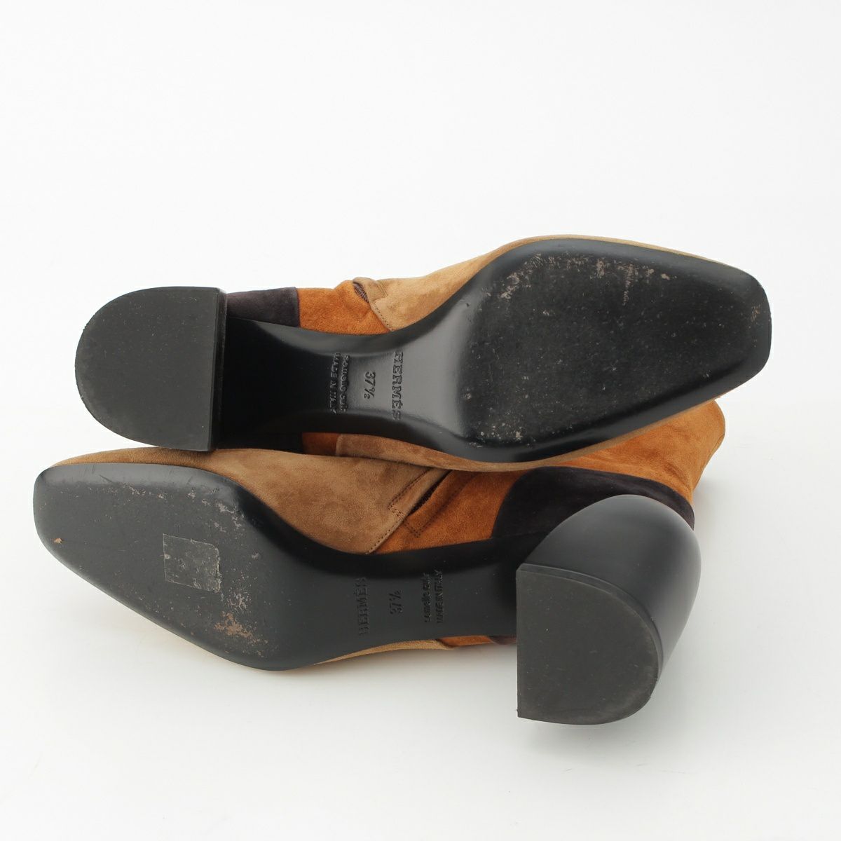エルメス BROOKE ブルーク スエード レザー サイドジップ ブーツ シューズ ショート ブラウン ベージュ 37 1/2