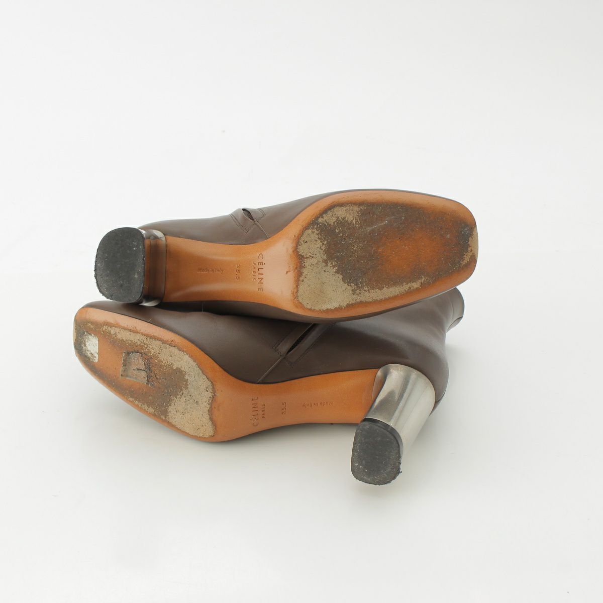 セリーヌ フィービー期 BamBam バンバン メタルヒール サイドジップ ショート ブーツ ブーティ― ブラウン 37