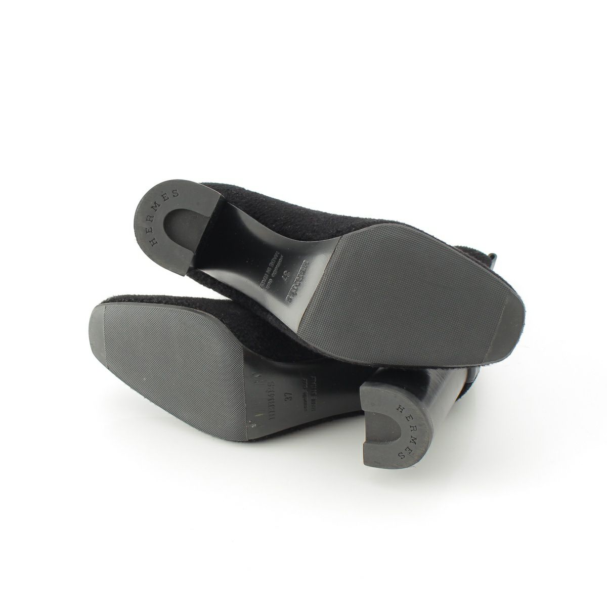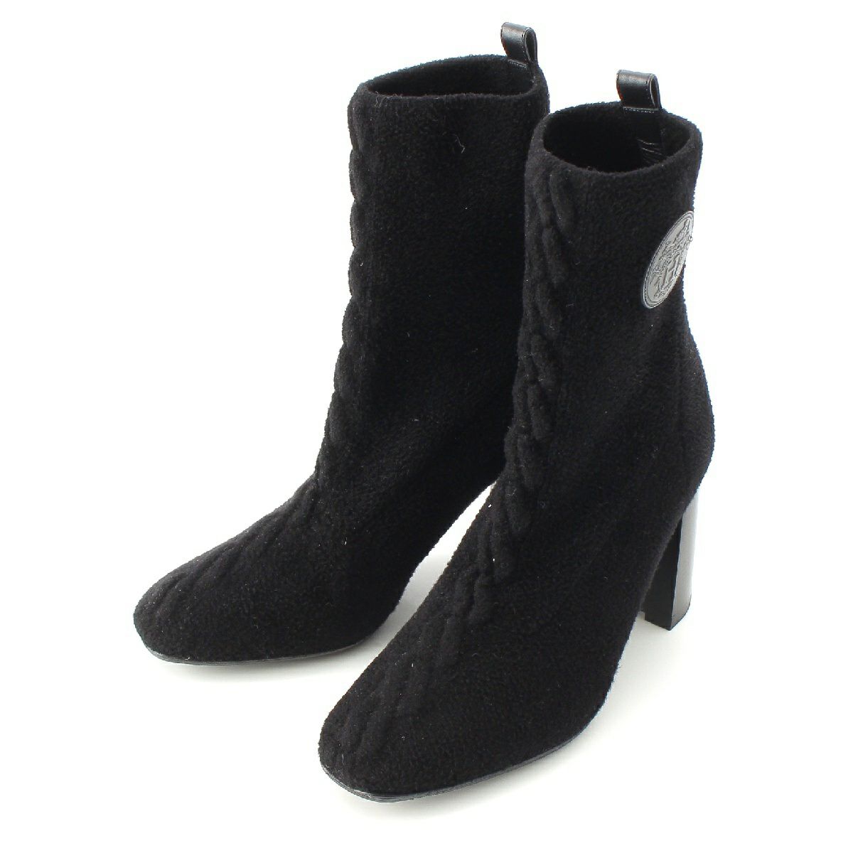 エルメス ヴォルヴェール エクスリブリス ロゴパッチ ニット ヒール ショート ブーツ ブーティ― ブラック 37