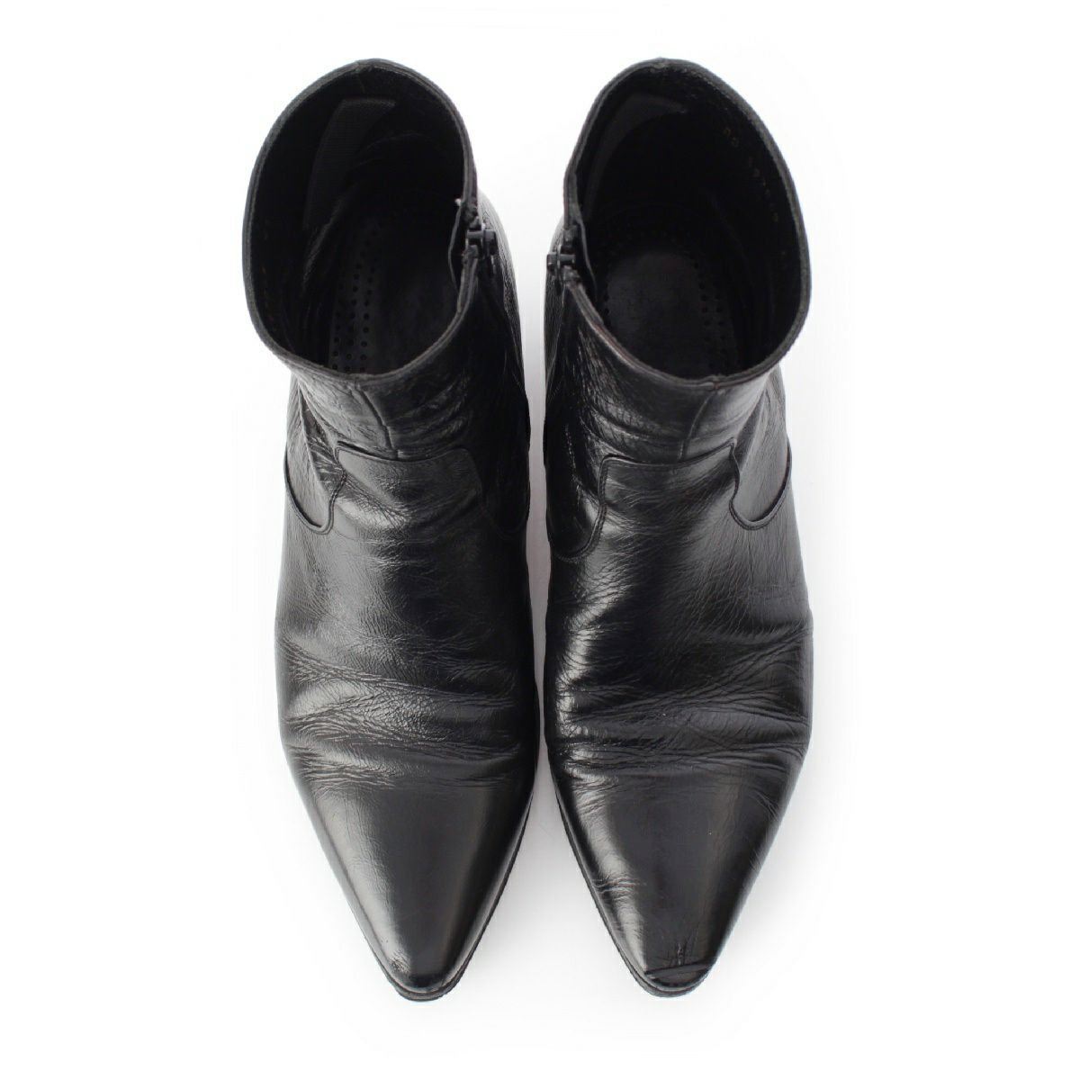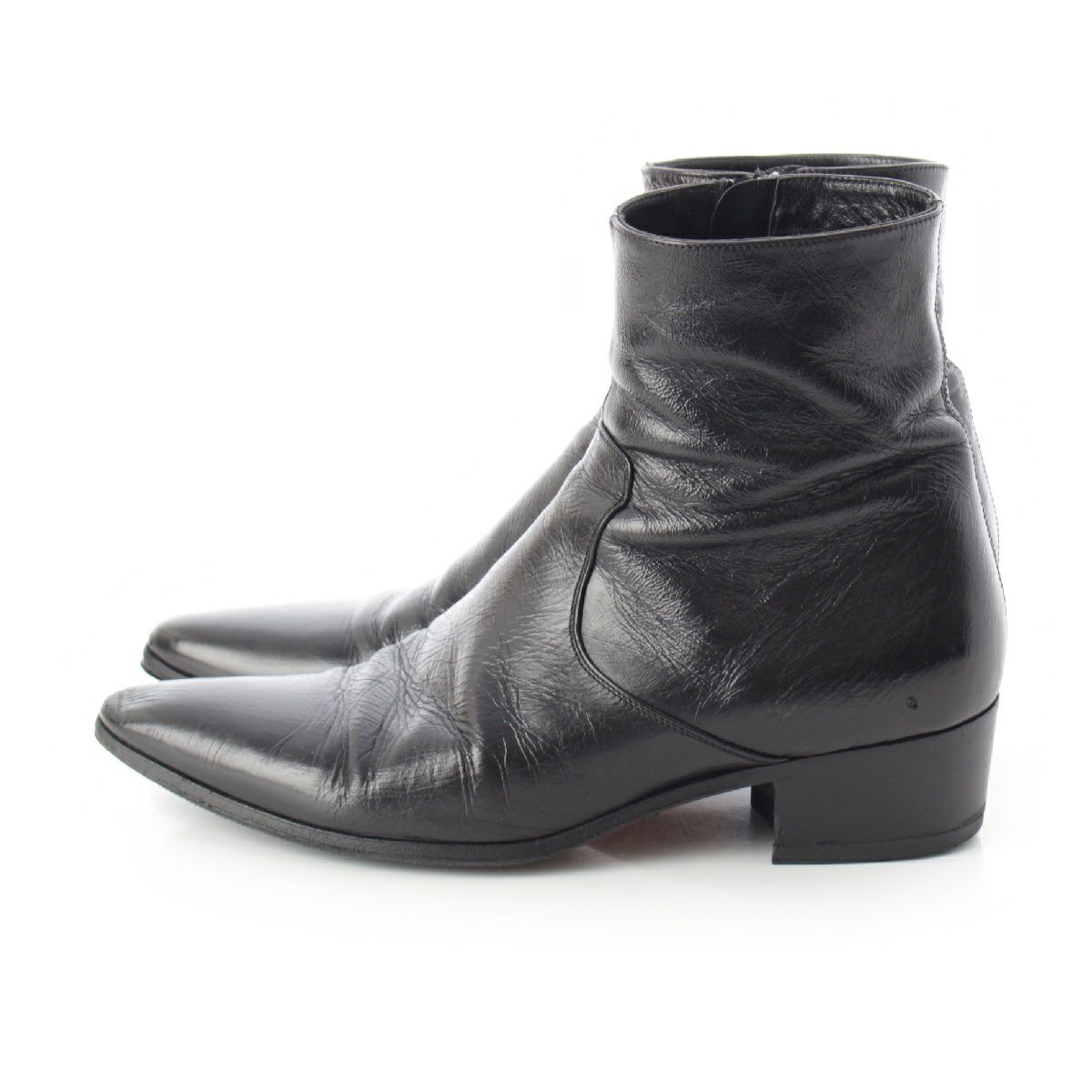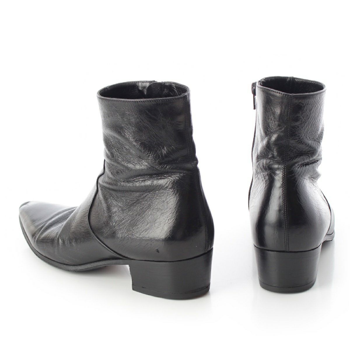 サンローラン 牛革 レザー サイドジップ アンクル ショート ブーツ シューズ 397069 ブラック 41