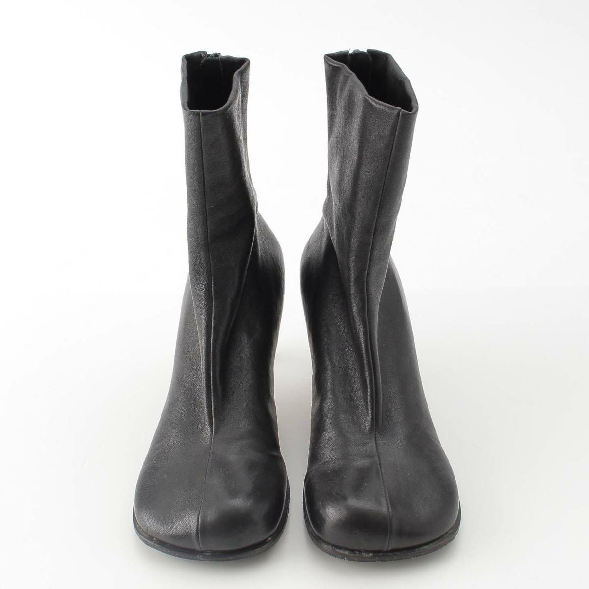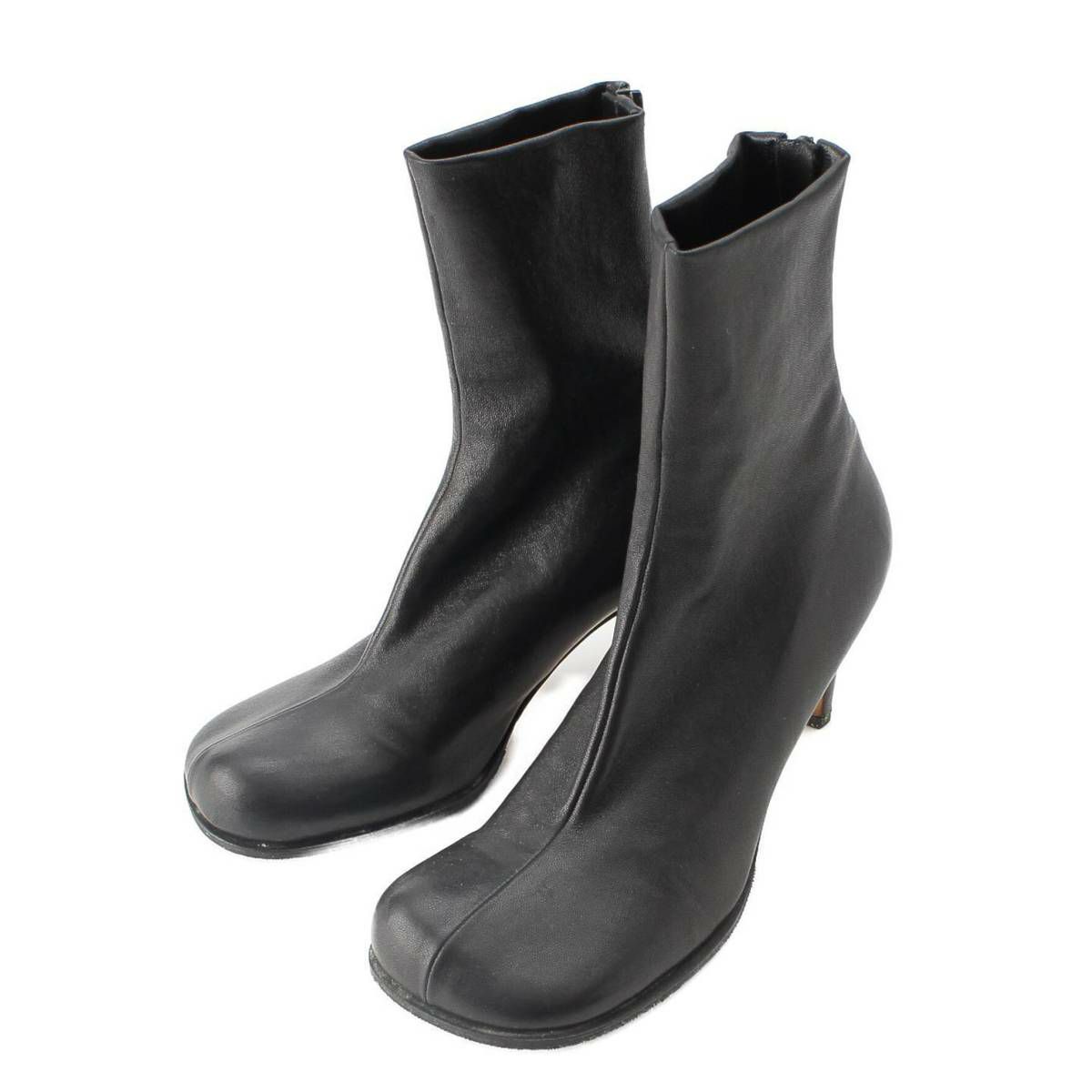 ボッテガヴェネタ Bottega Veneta スクエアトゥ ブロック レザー アンクル ショート ブーツ ブラック 37
