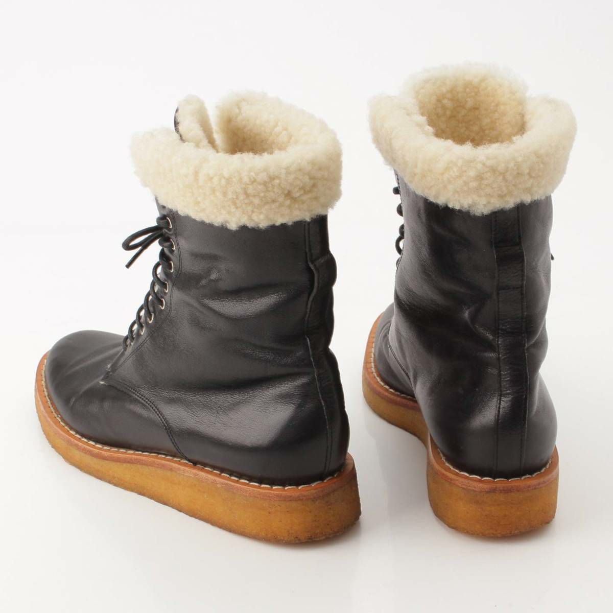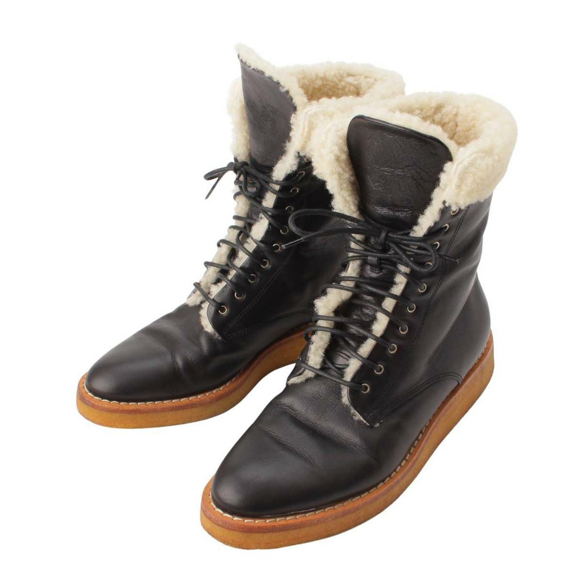 セリーヌ レースアップ レザー ムートンブーツ ブラック