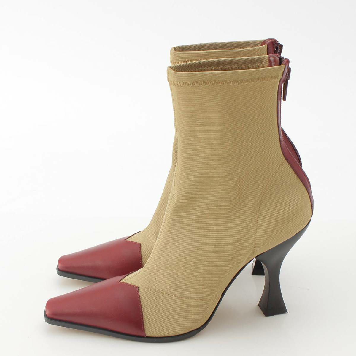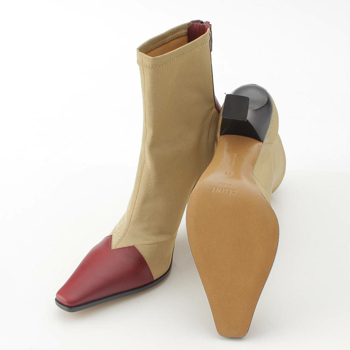セリーヌ シャイニー カーフ&グロスグレイン ショート ブーツ ベージュ×レッド 36