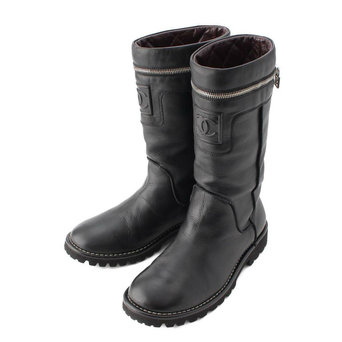シャネル コココクーン ココマーク レザー アンクル ショートブーツ G26537 ブラック 40