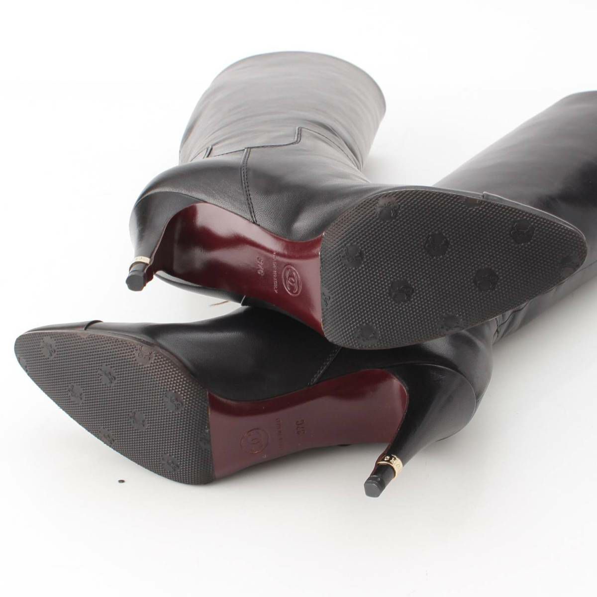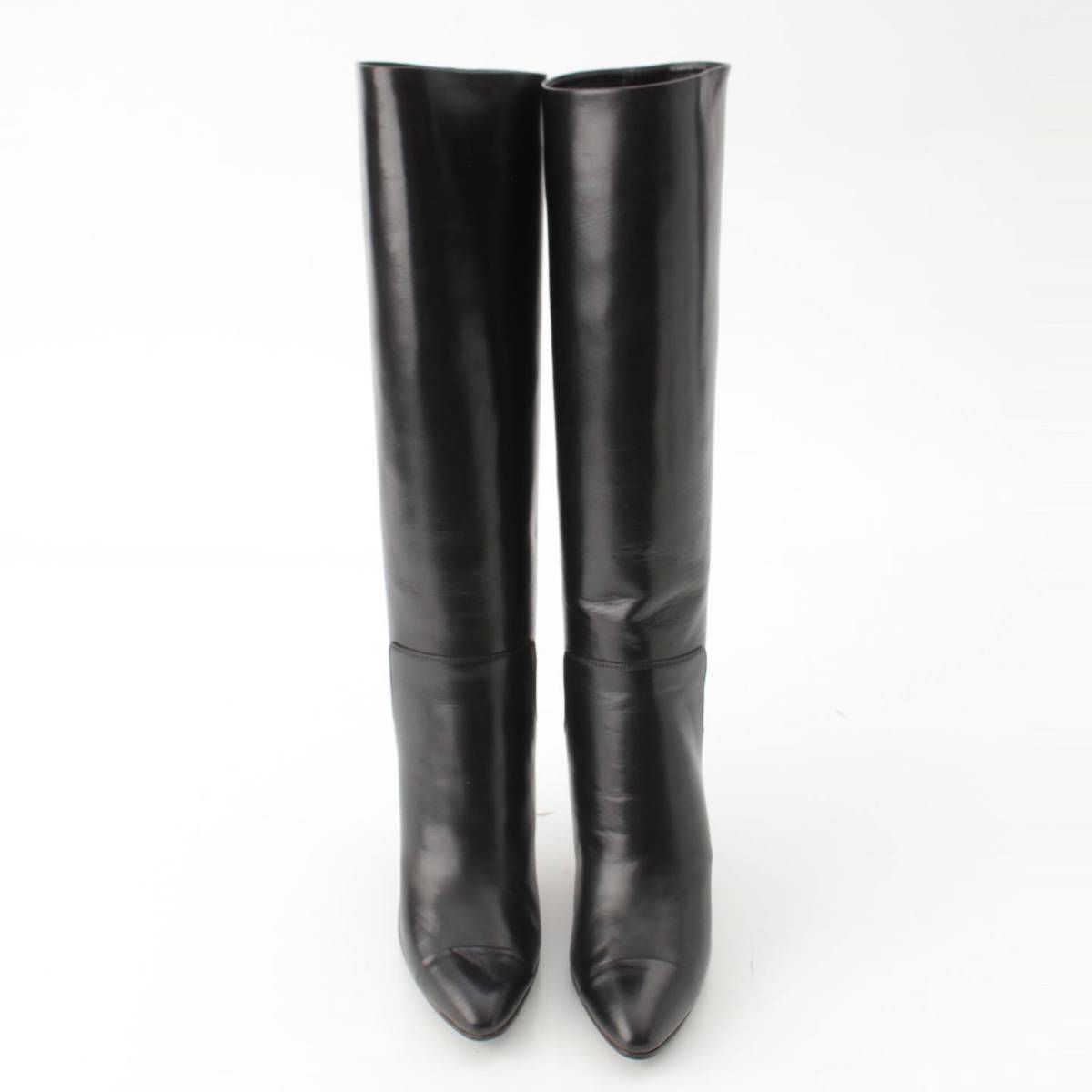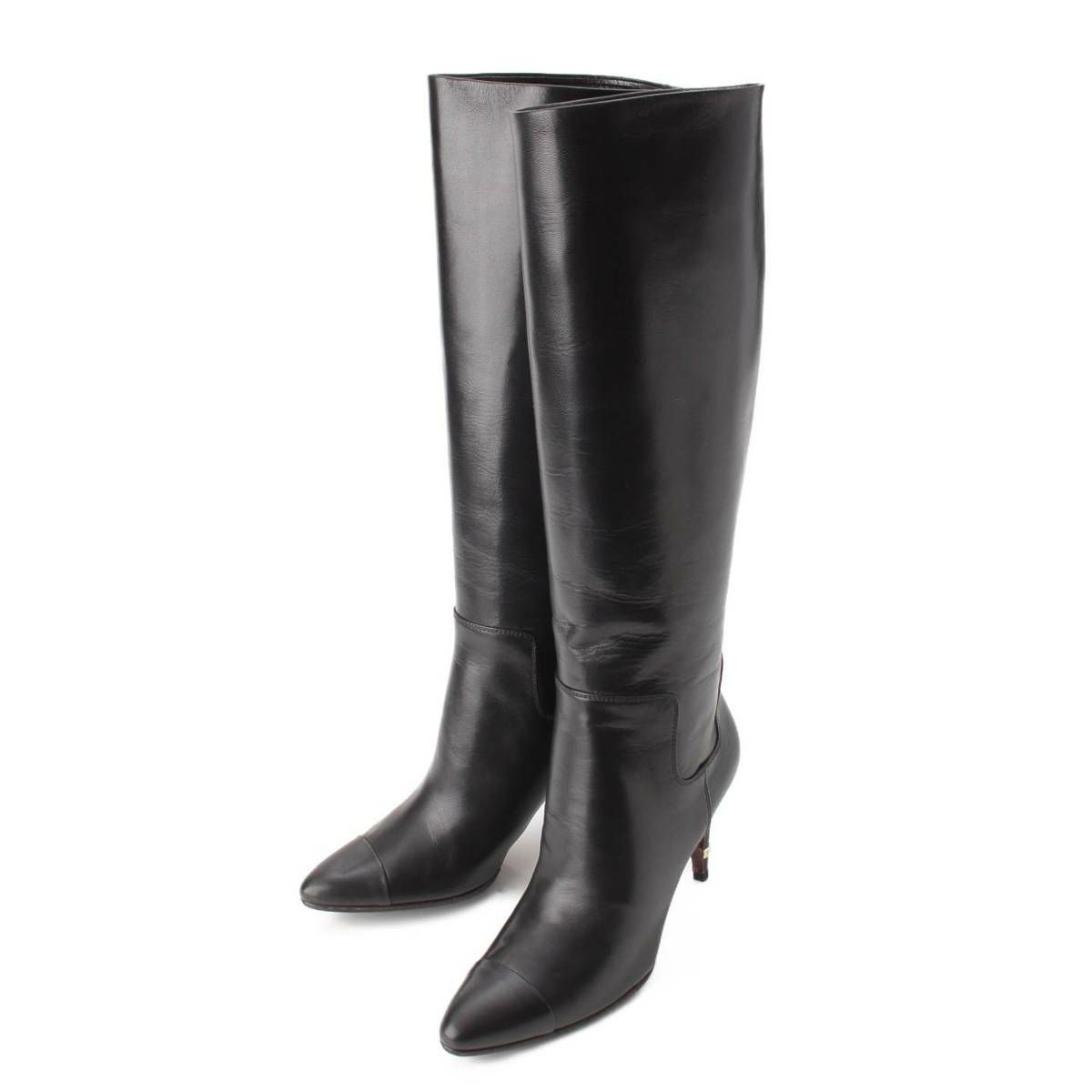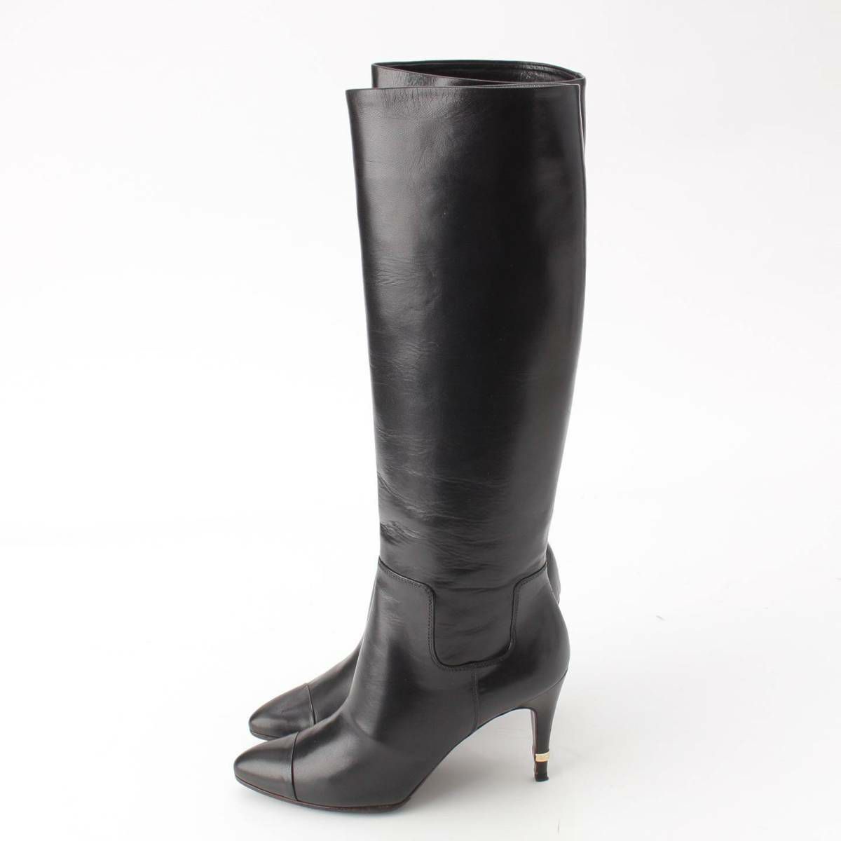 シャネル 07A レザー ロゴ ロング ヒール ブーツ G25666 ブラック 37