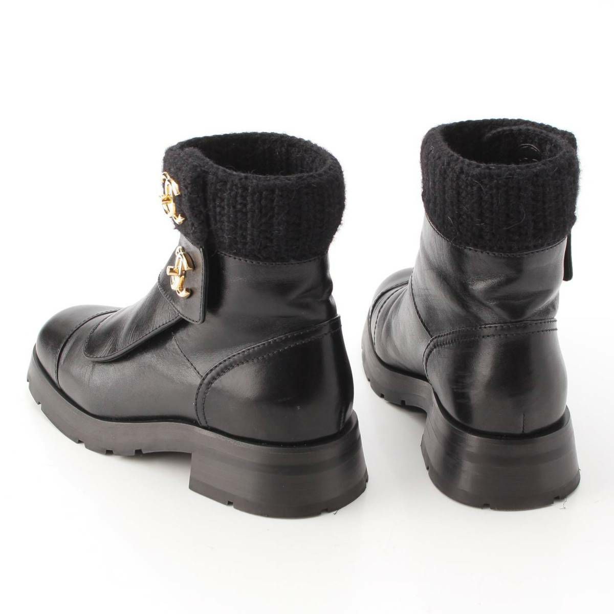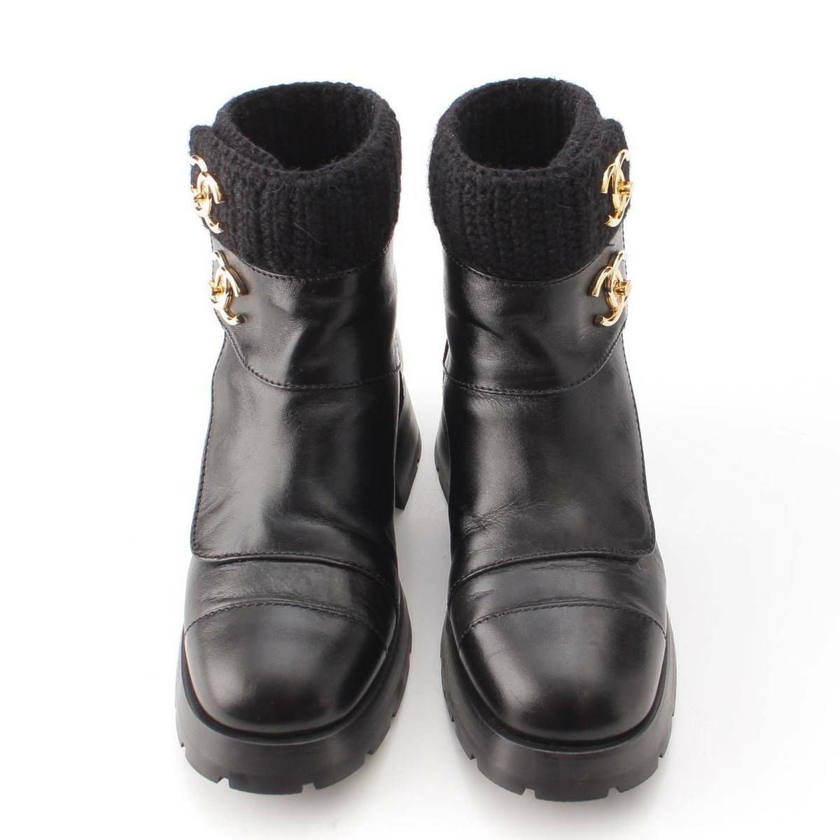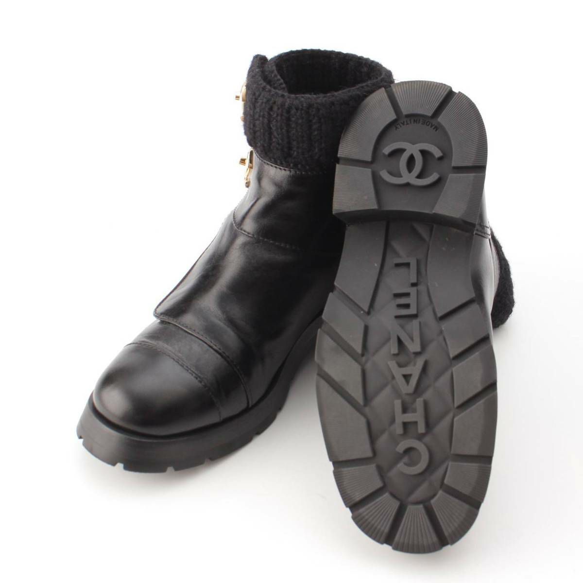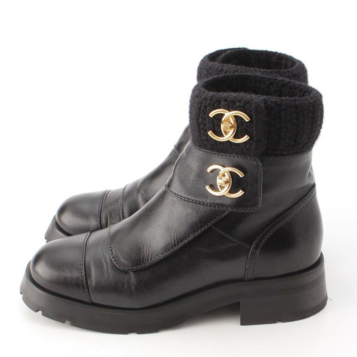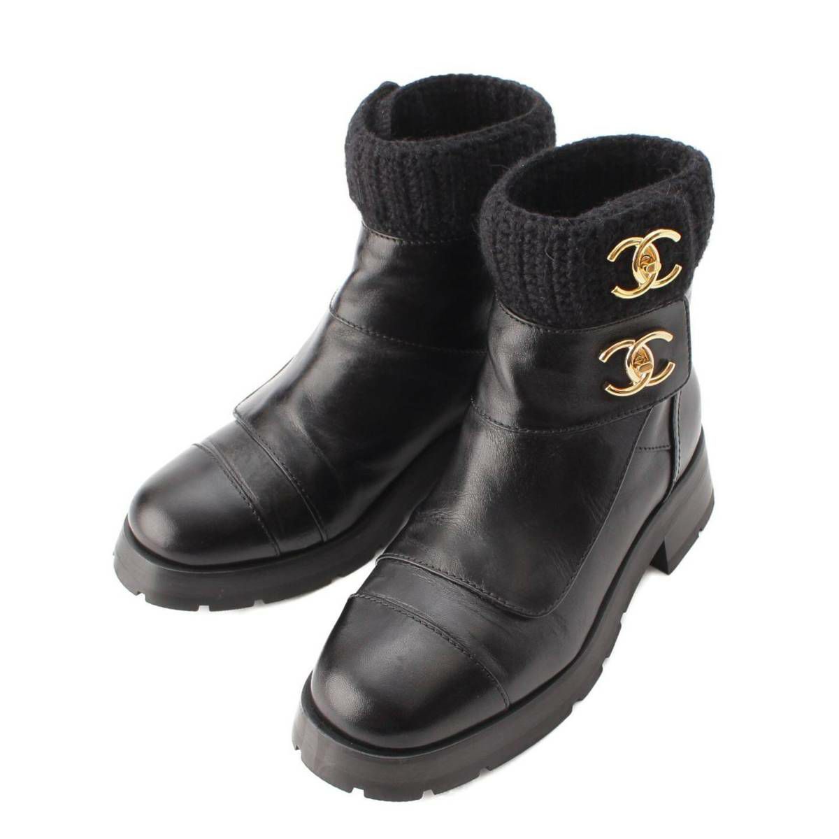 シャネル 23K ターンロックココマーク レザー ニット ショートブーツ G45282 ブラック 38C