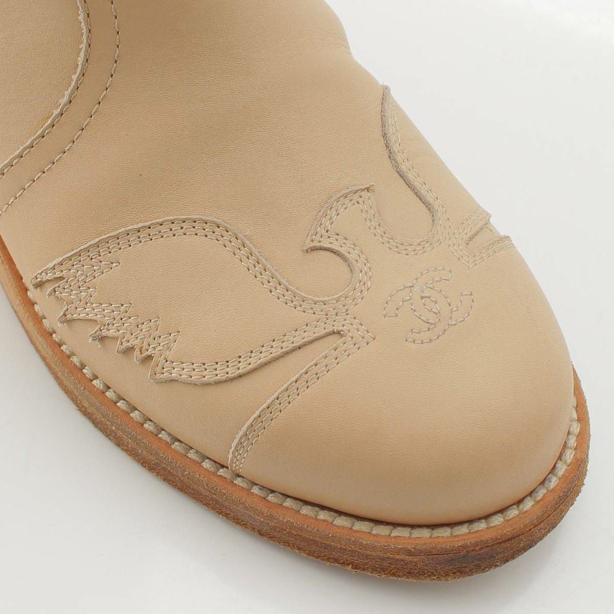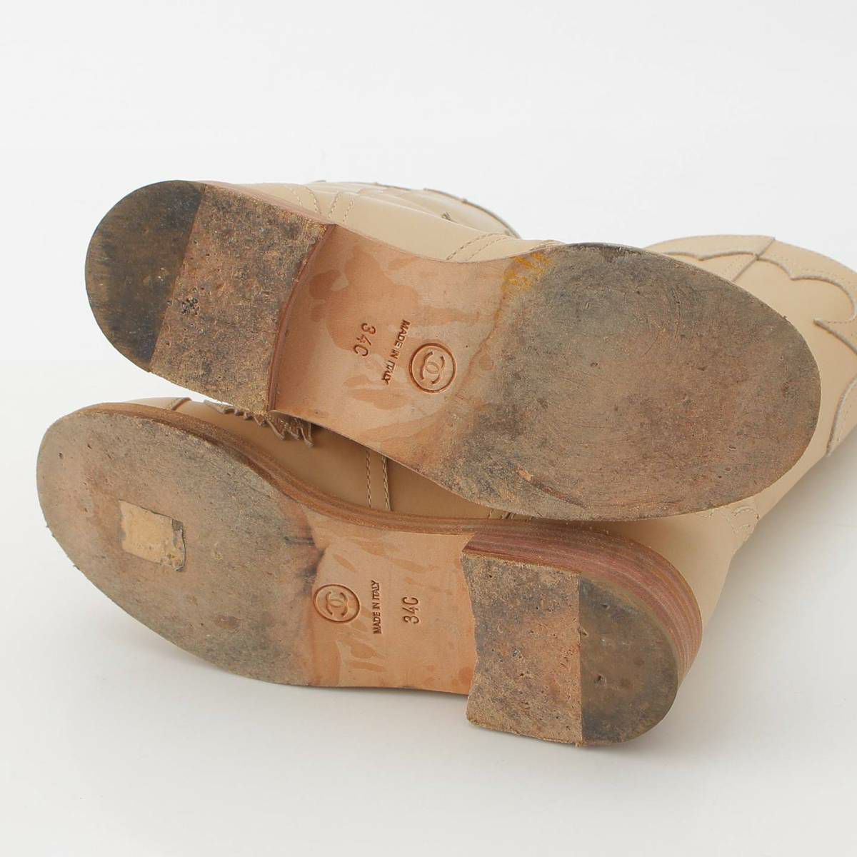 シャネル 14A ココマーク レザー ウエスタン ショートブーツ G30057 ベージュ 34