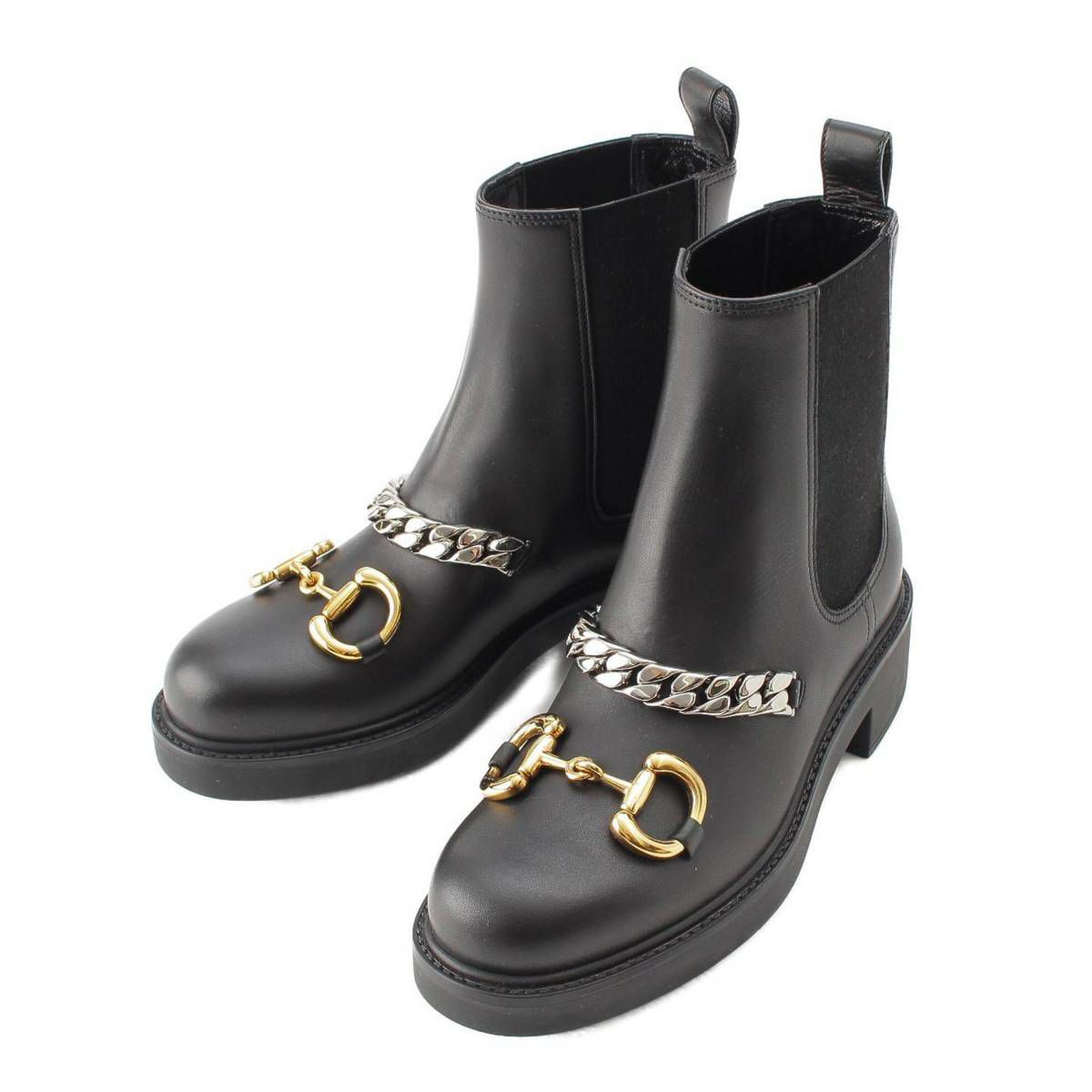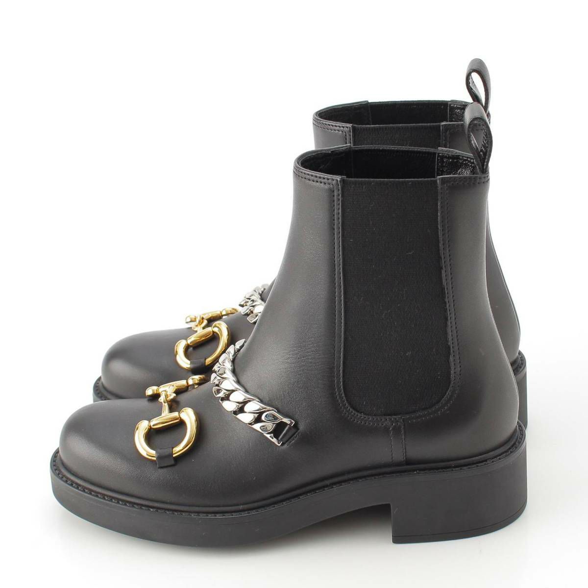 グッチ ホースビット金具 サイドゴア レザー チェルシーブーツ ショート 670393 ブラック 35