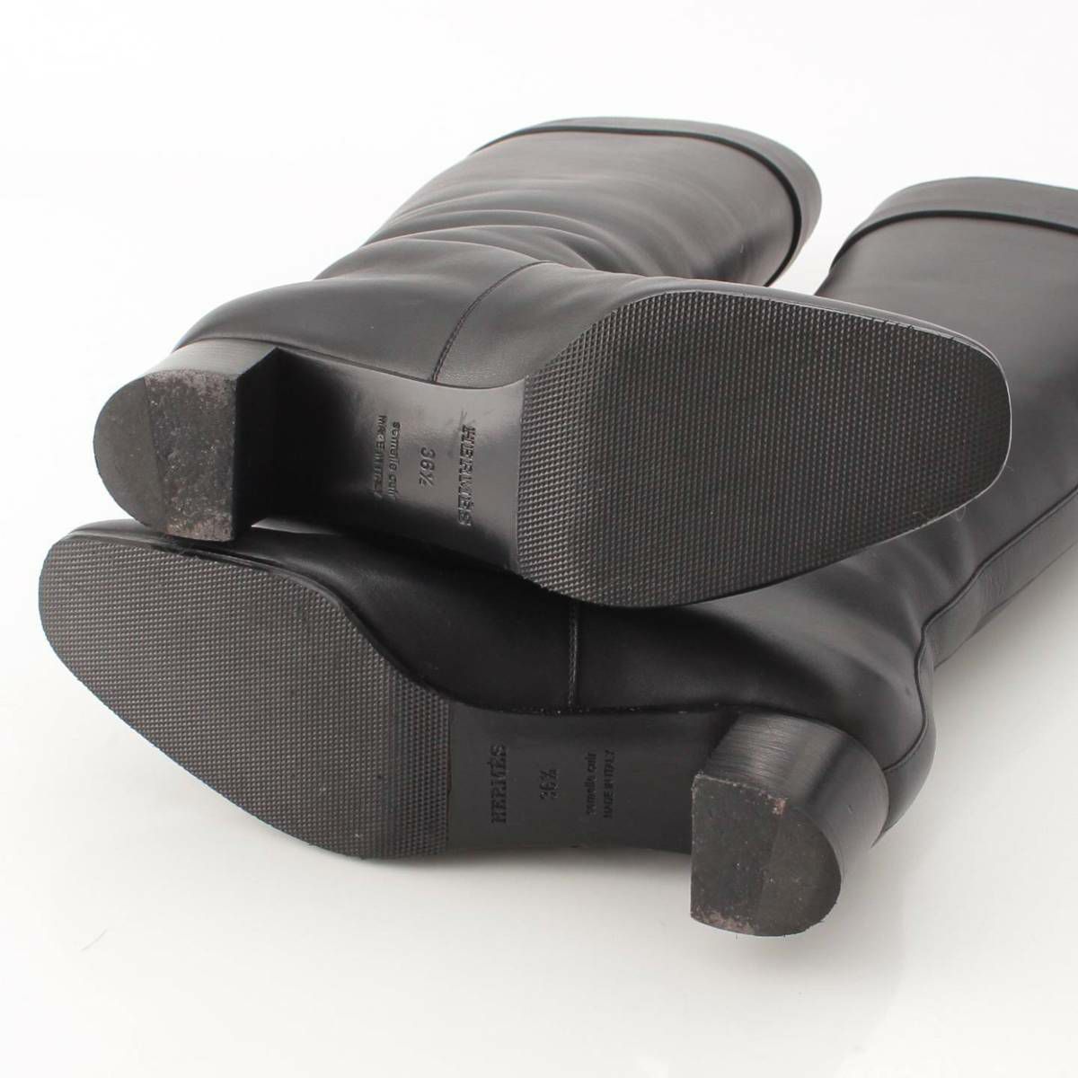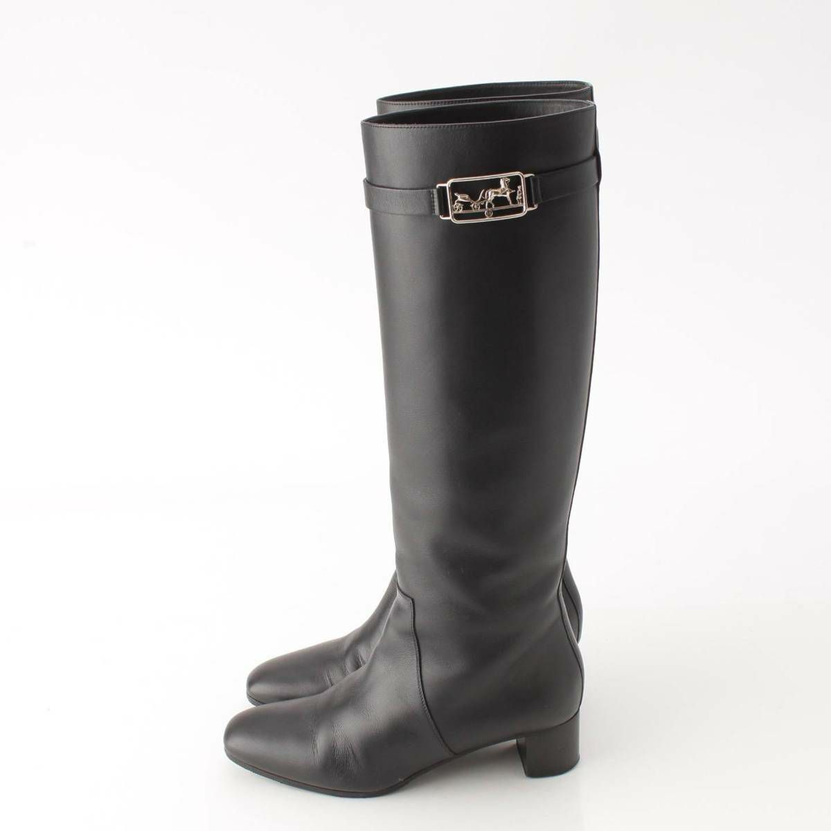 エルメス ヴェルサイユ ロゴ 馬車 レザー ロングブーツ ブラック 36 1/2