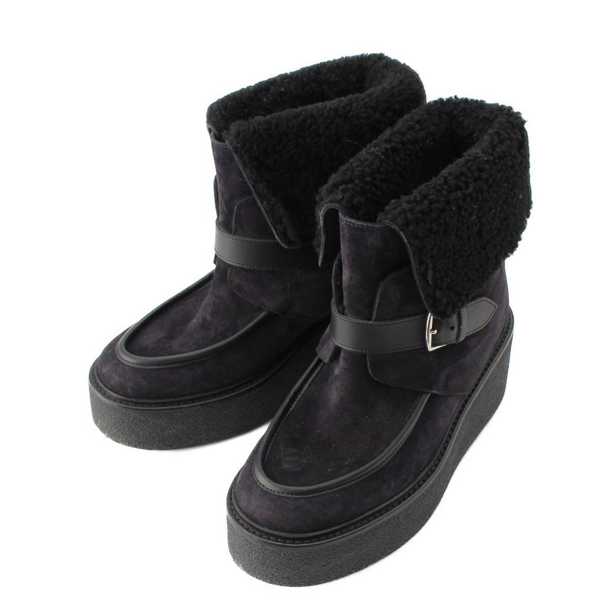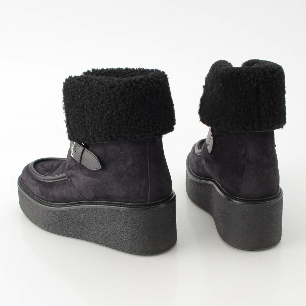 エルメス エミスフェール シープスキン ボア ムートンブーツ ショートブーツ ブラック 36.5