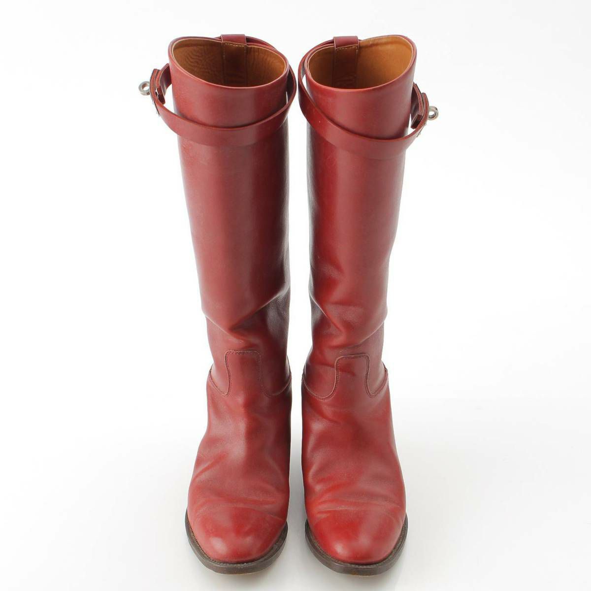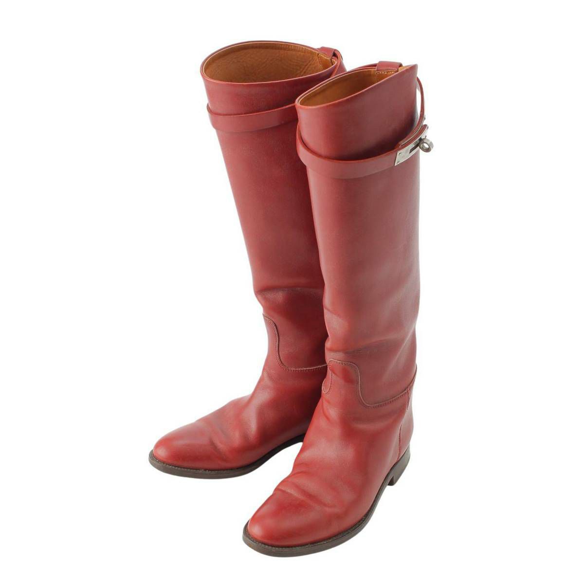 エルメス ケリー レザー ボックスカーフ ロングブーツ シルバー金具 レッド 36