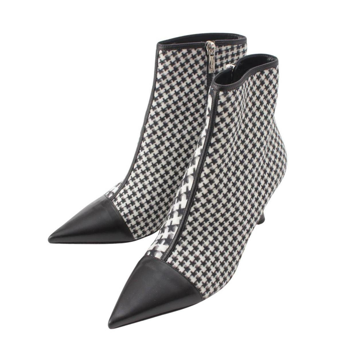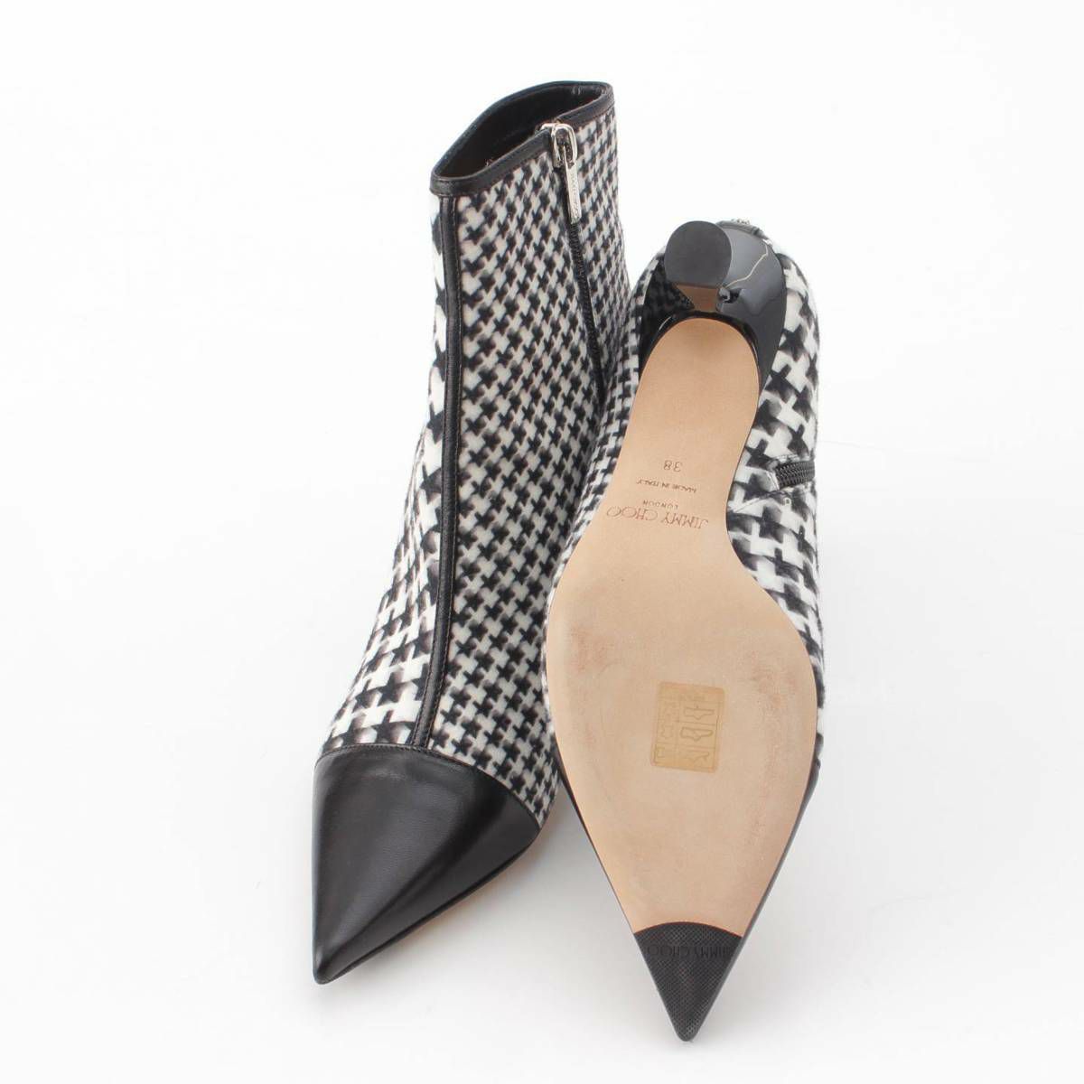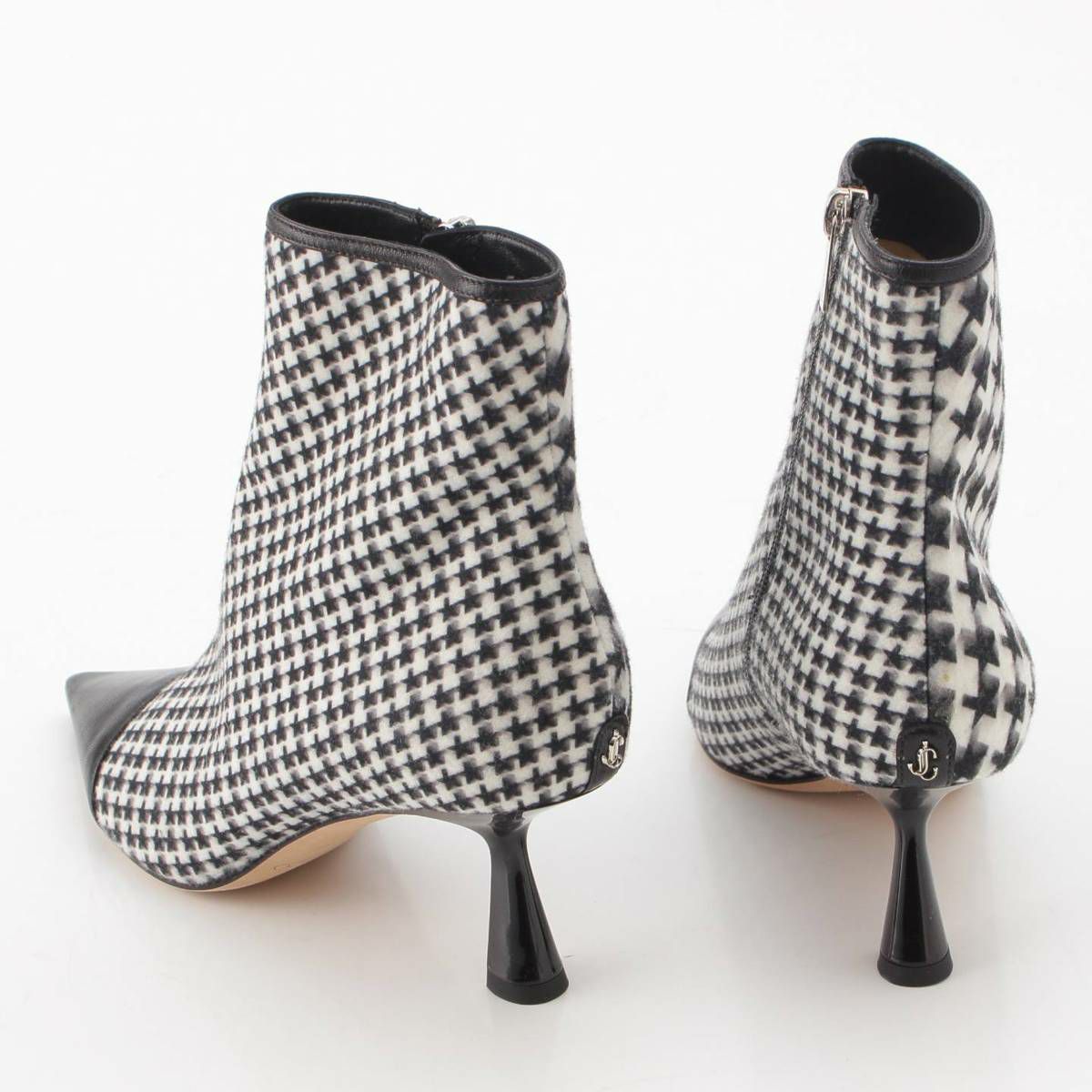 ジミーチュウ Jimmy Choo ヴァレンヌ 格子柄 星 ファブリック×レザー ショートブーツ ホワイト×ブラック 38