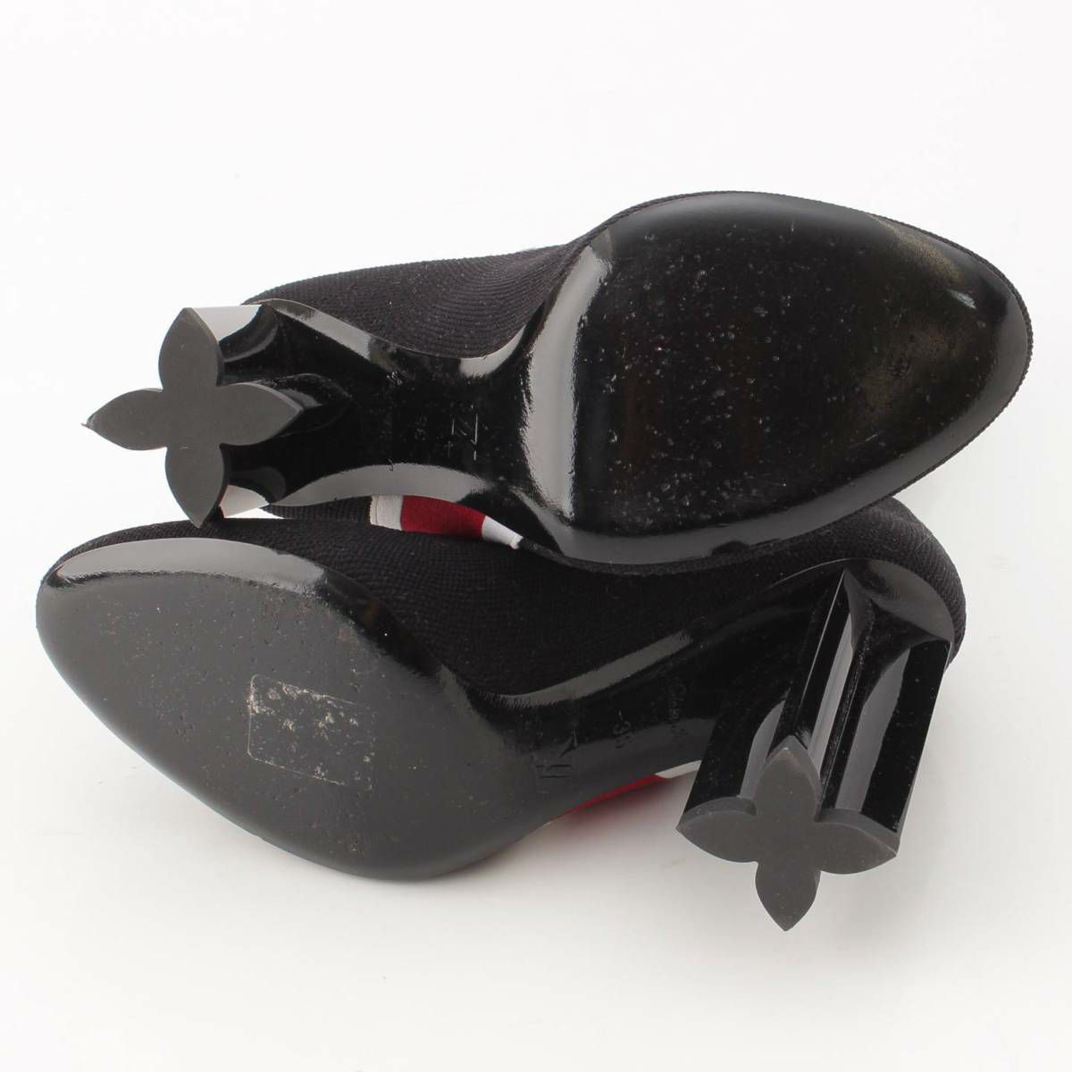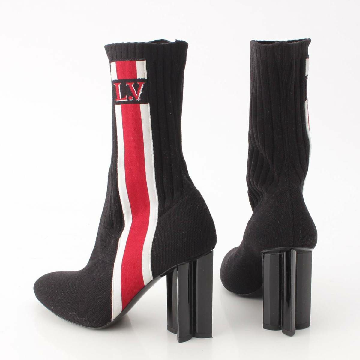 ルイヴィトン ロゴ シルエットライン ニット ソックス ヒール ショートブーツ ブラック 35