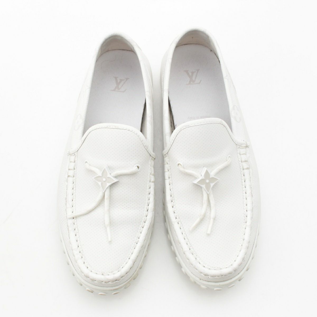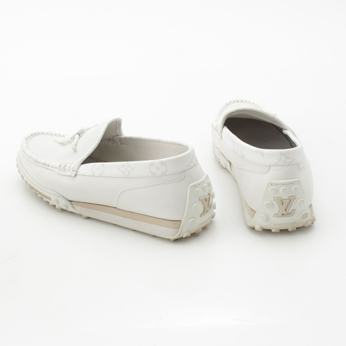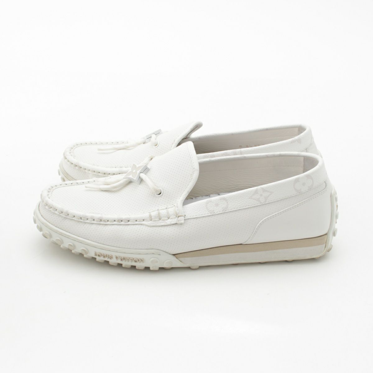 ルイヴィトン LVレーサーライン レザー ドライビングシューズ ローファー モカシン ホワイト 8 1/2