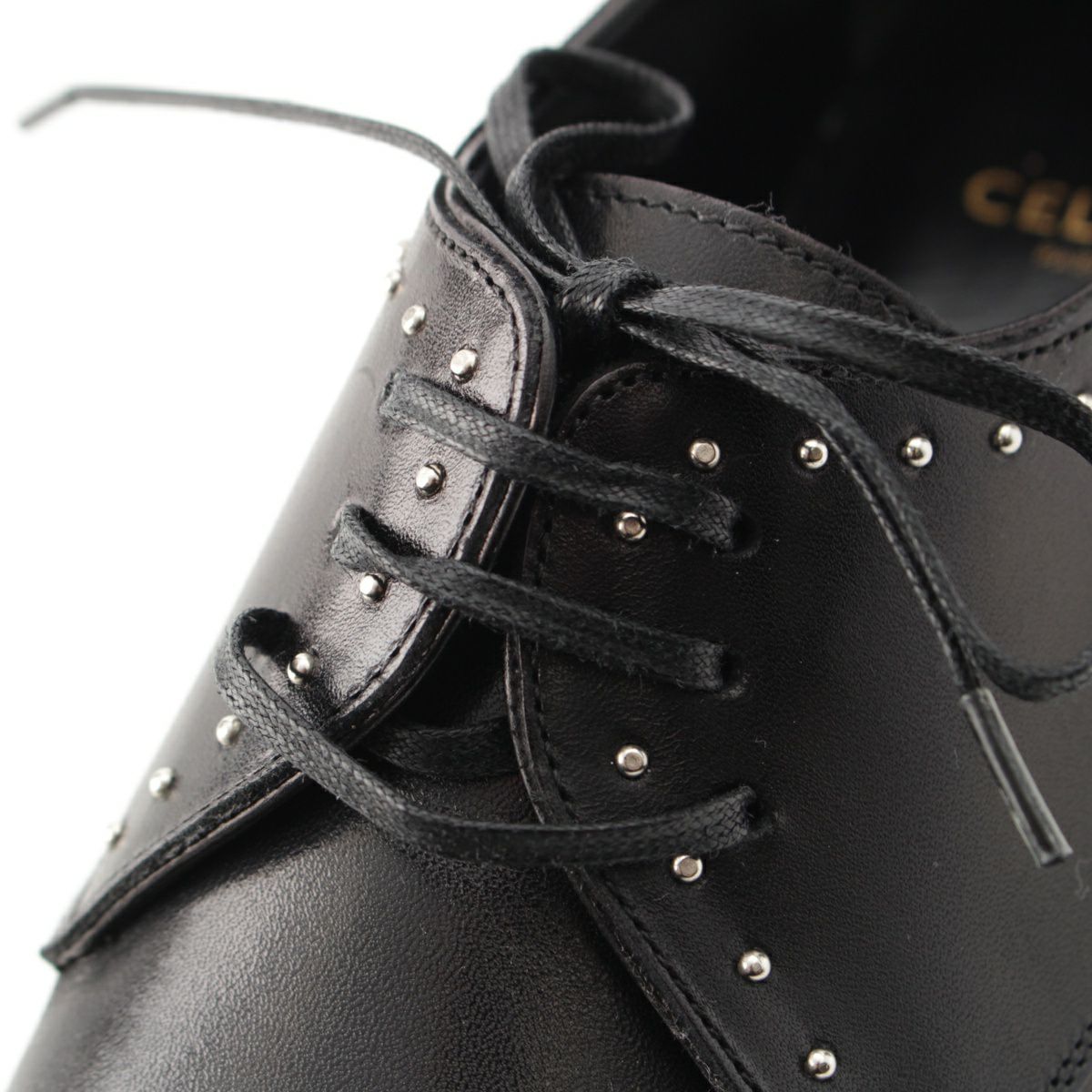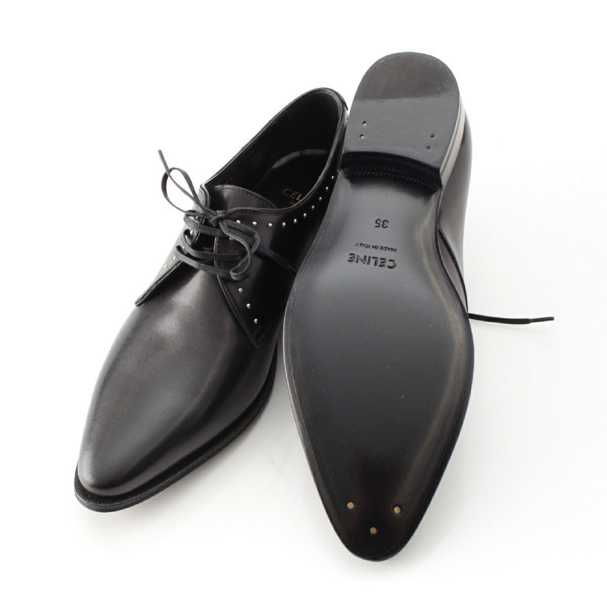 セリーヌ レザー スタッズ レースアップ ドレスシューズ ブラック 35