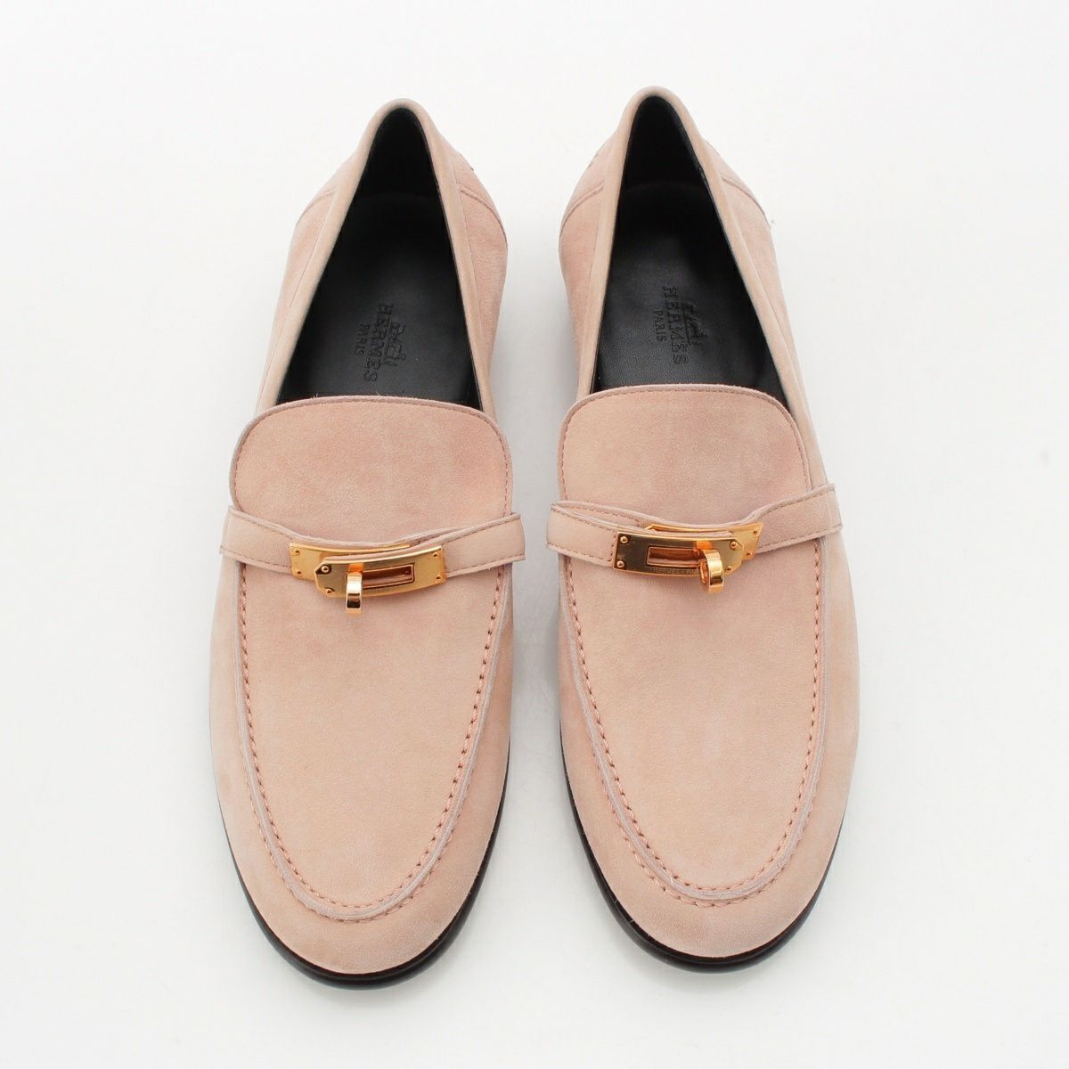 エルメス デスタン シェーブル ヴェロア モカシン スエードレザー ローファー ローズオパリン 38.5