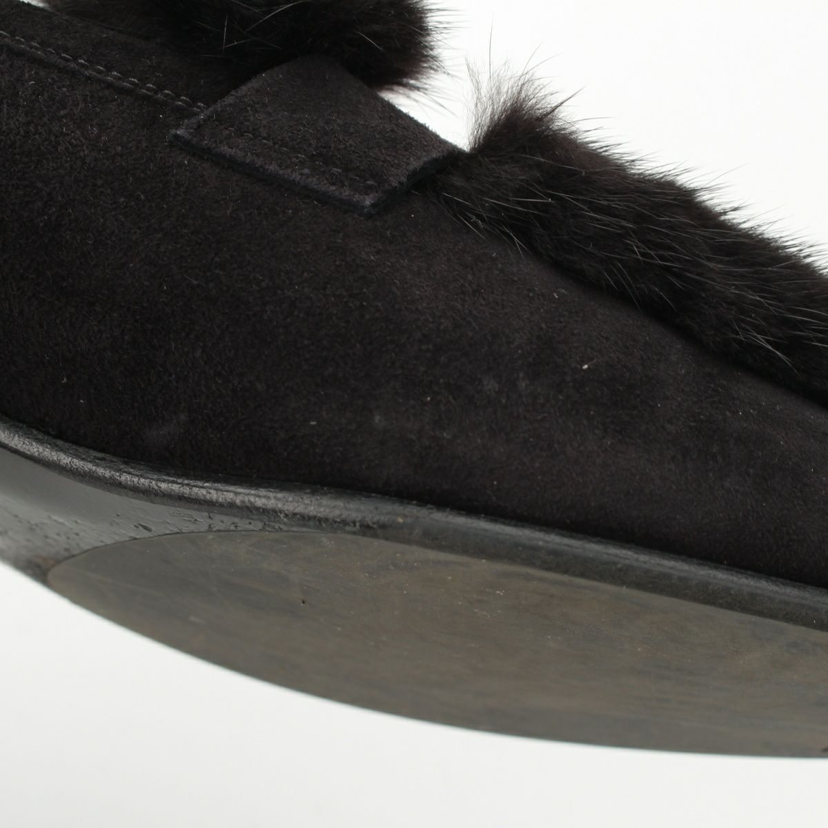 エルメス パリ モカシン スウェードレザー フラットシューズ ミンクファー ノワール ローファー ブラック 39