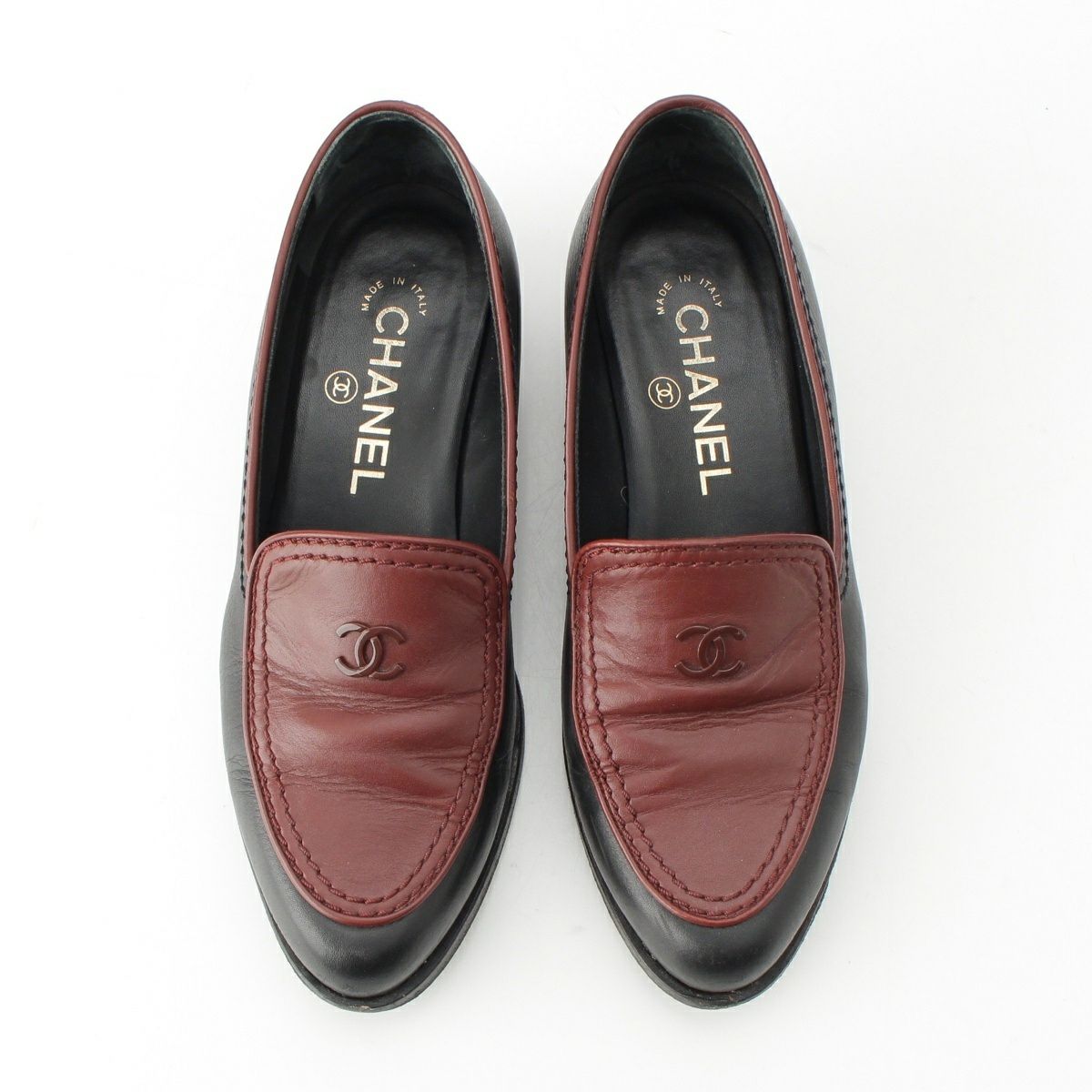 シャネル レザー ココマーク バイカラー ローファー シューズ G36717 X54452 ブラック 35C