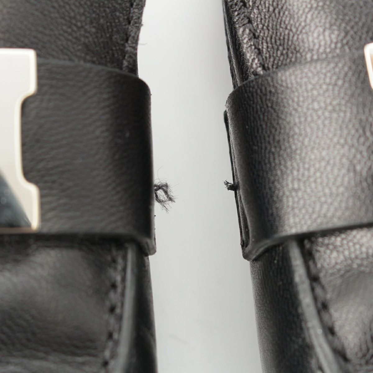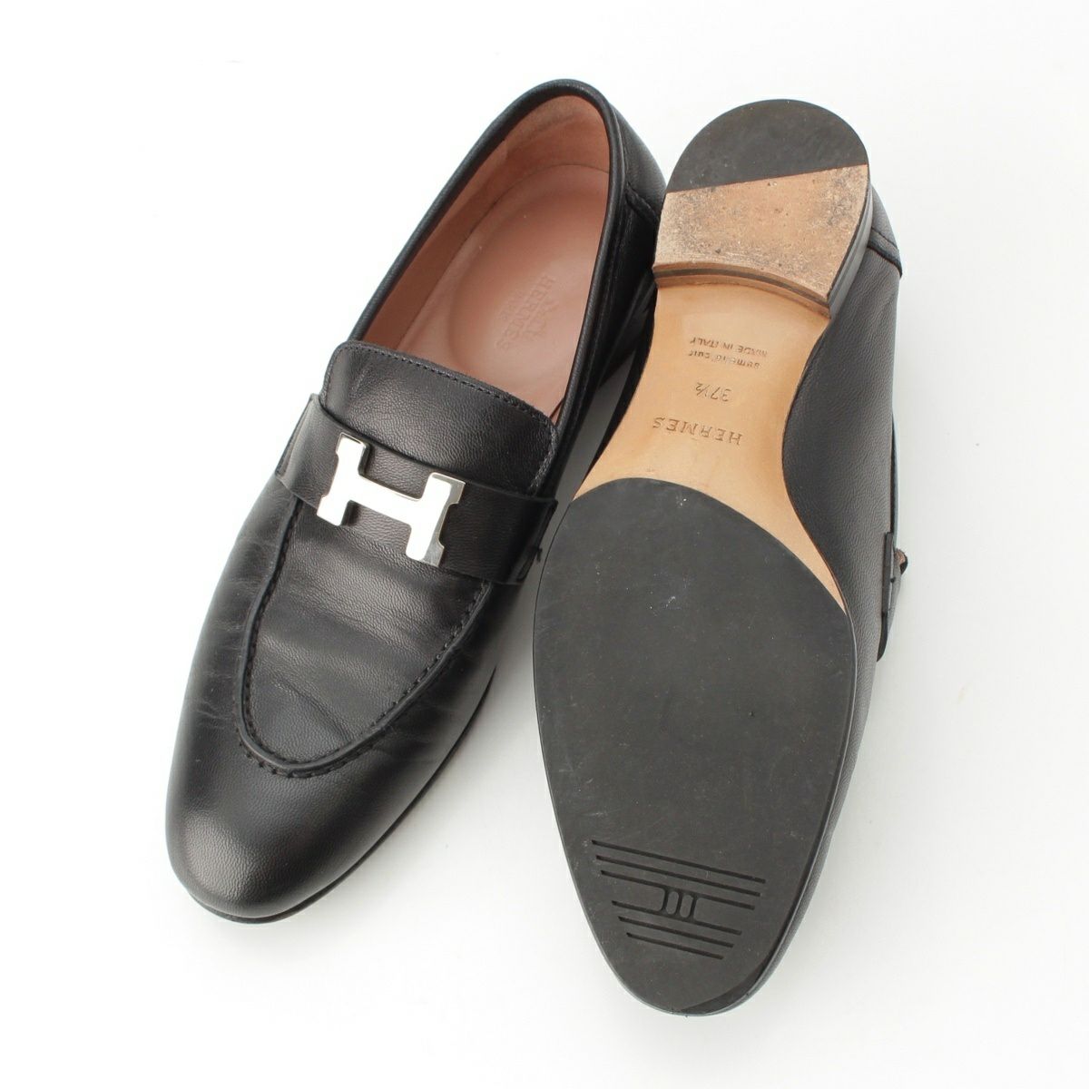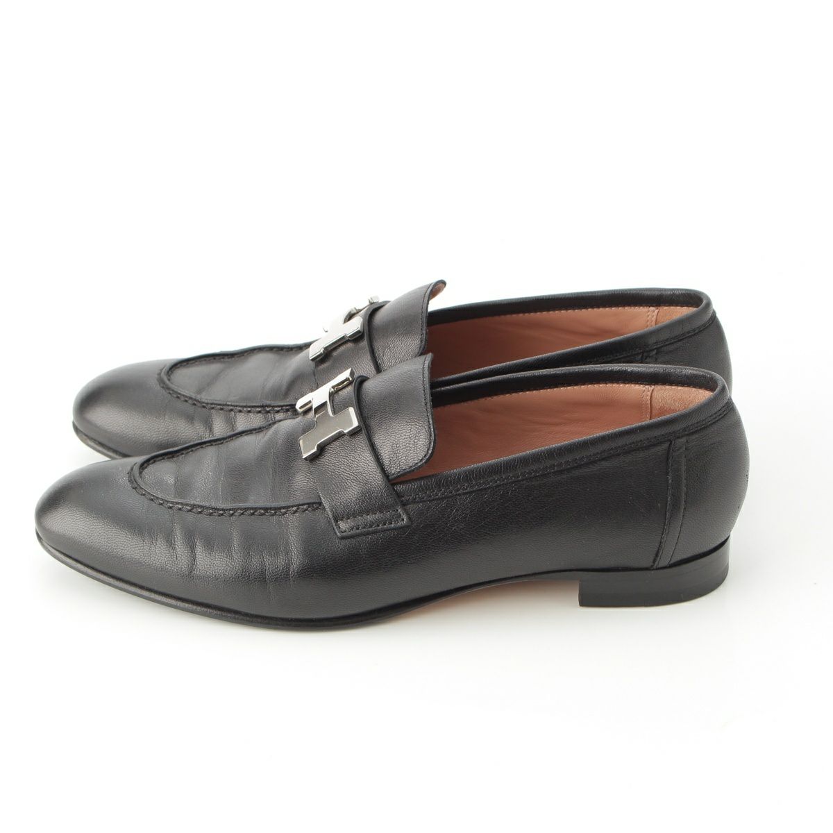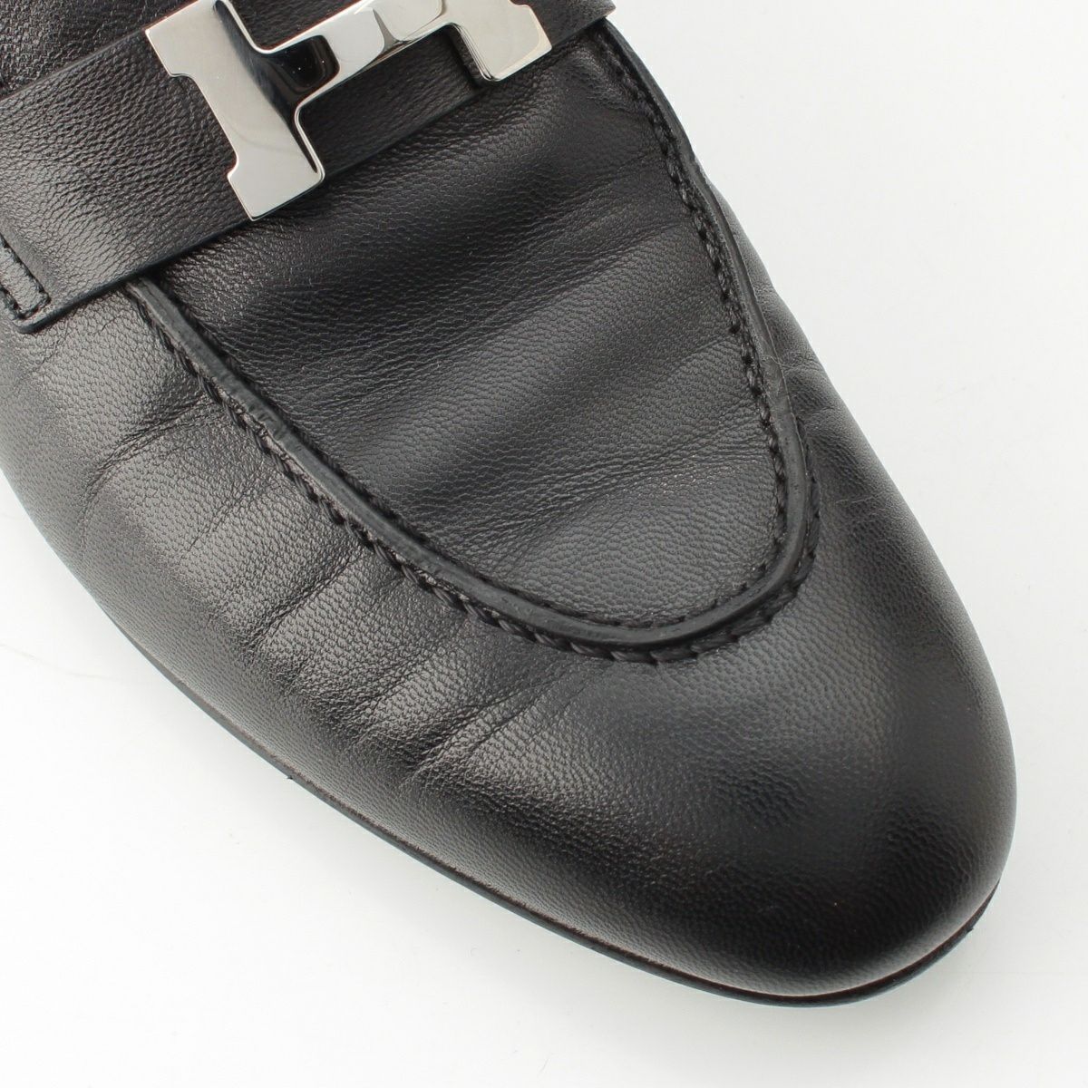 エルメス モカシン レザー コンスタンス Hモチーフバックル シルバー金具 ローファー シューズ ブラック 371/2