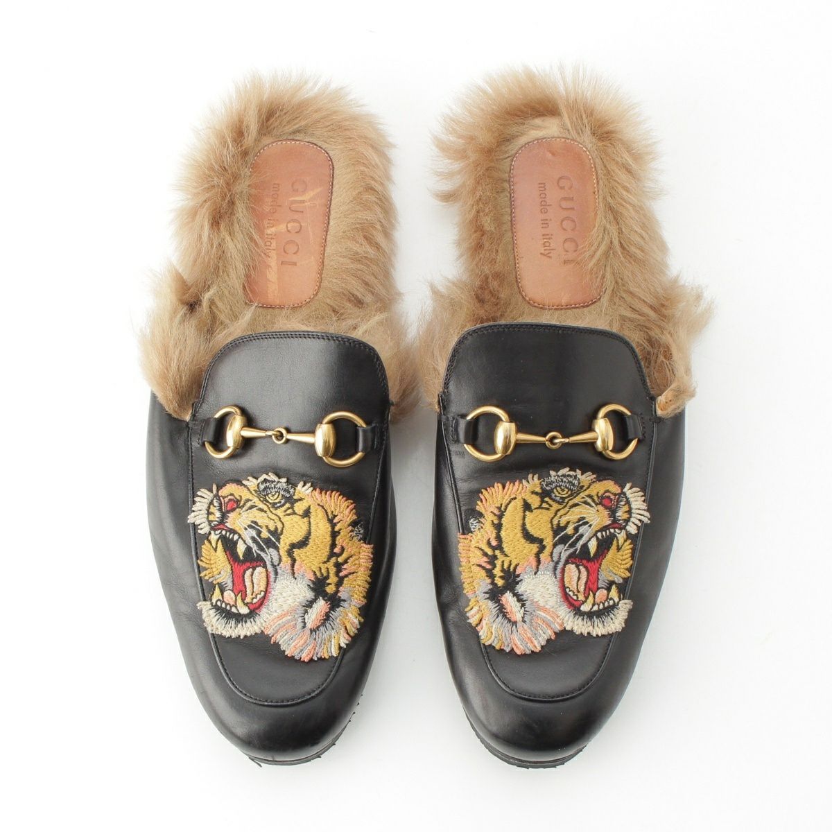 グッチ レザー ファー ビット 虎模様 スリッポン ローファー ブラック