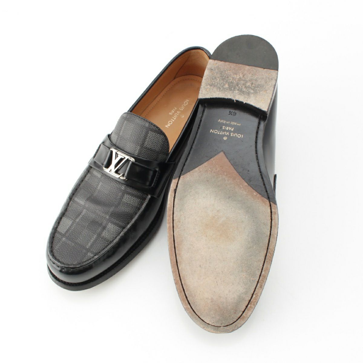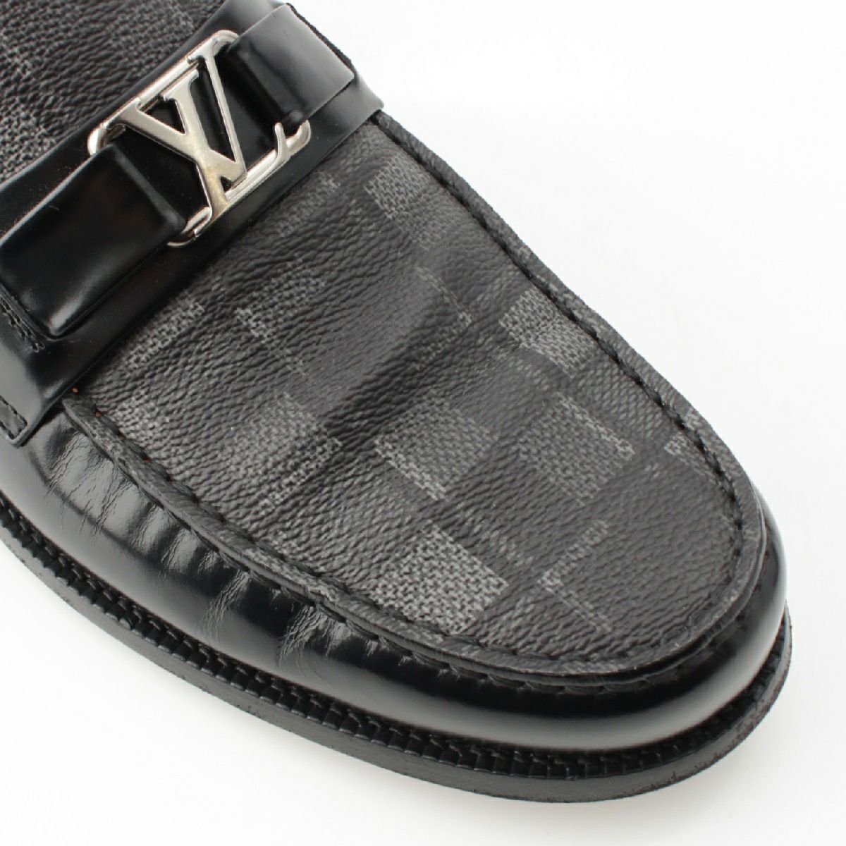ルイヴィトン メジャーライン レザー LV ダミエ ローファー シューズ ブラック 8 1/2