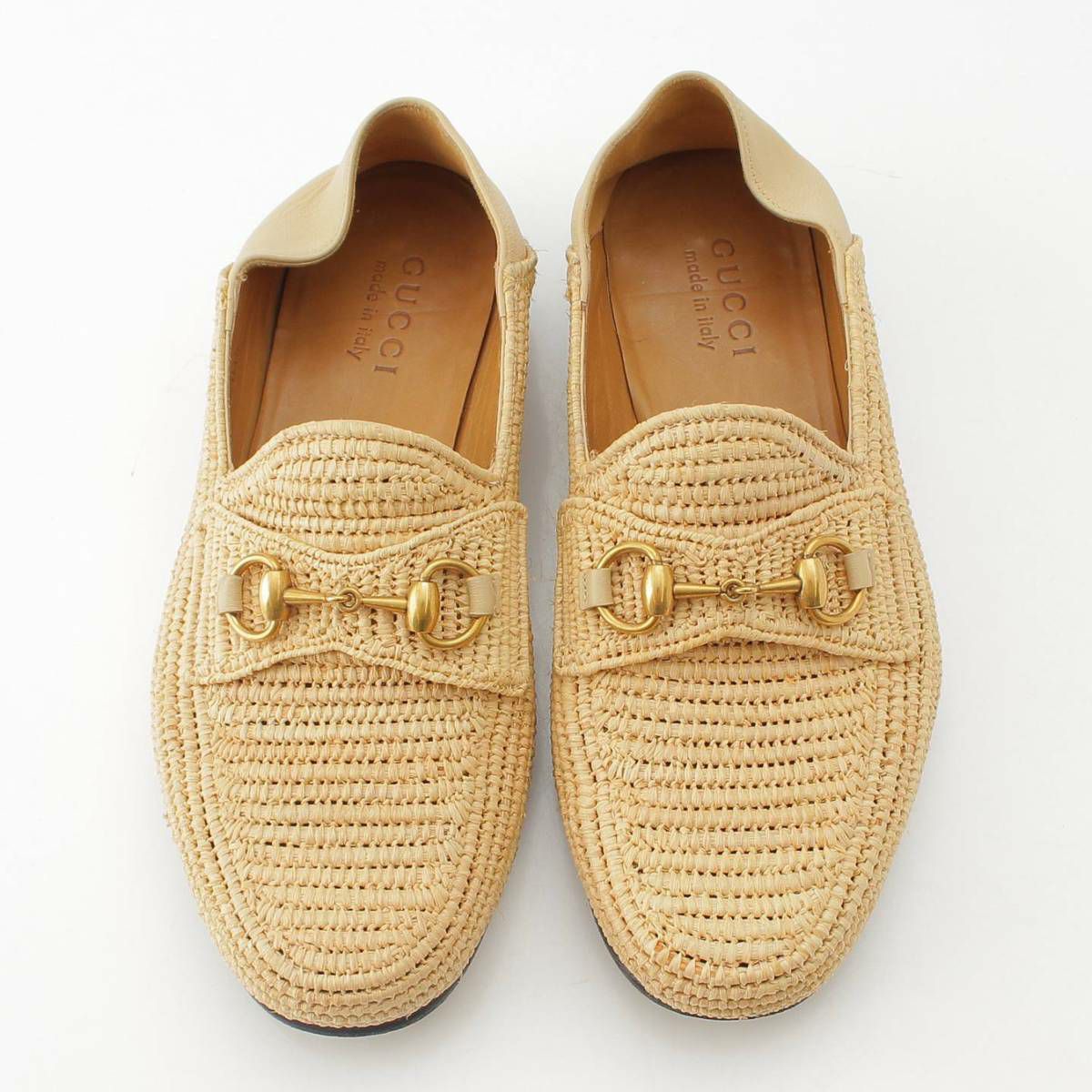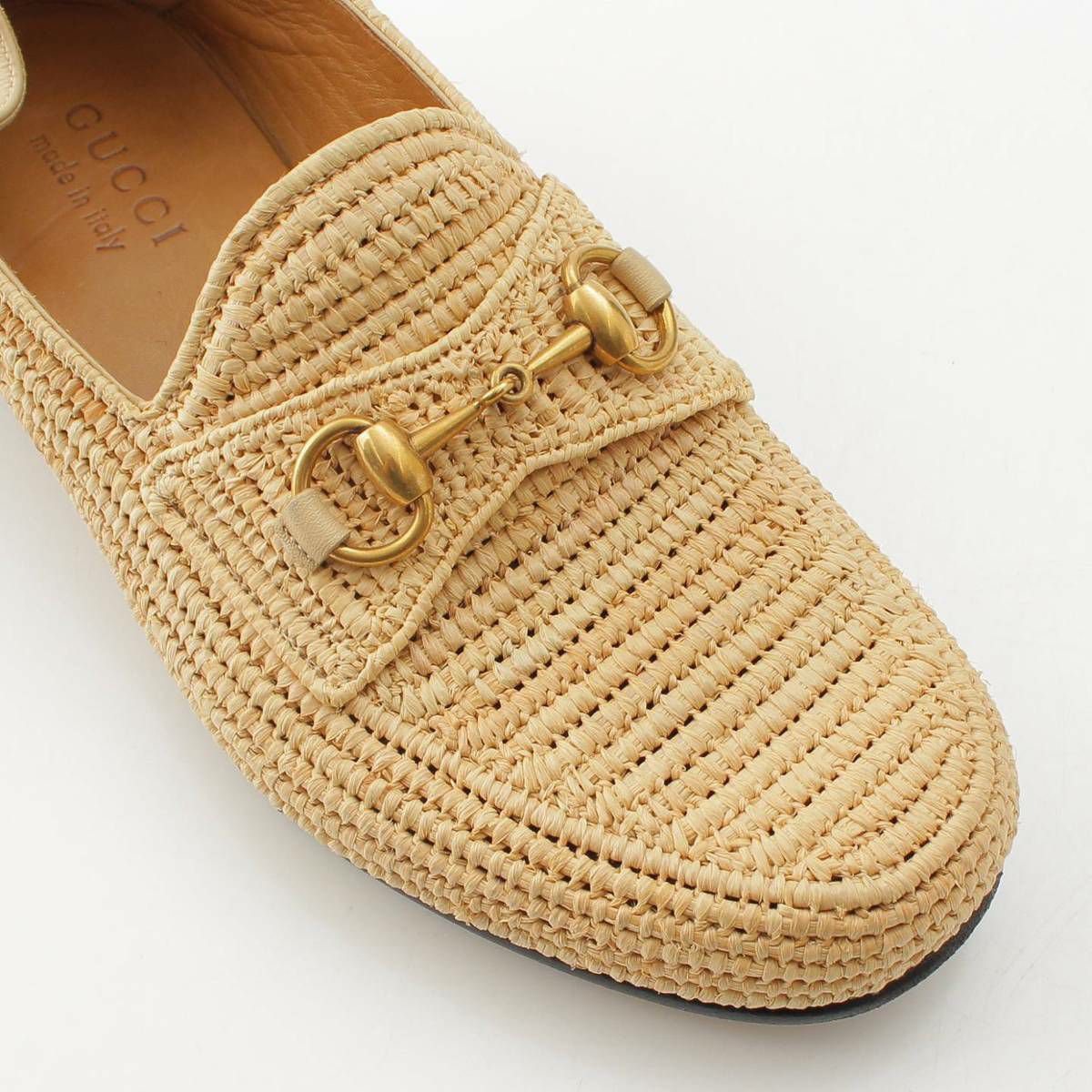 グッチ ホースビット ラフィア ローファー シューズ 528459 ベージュ 6 1/2