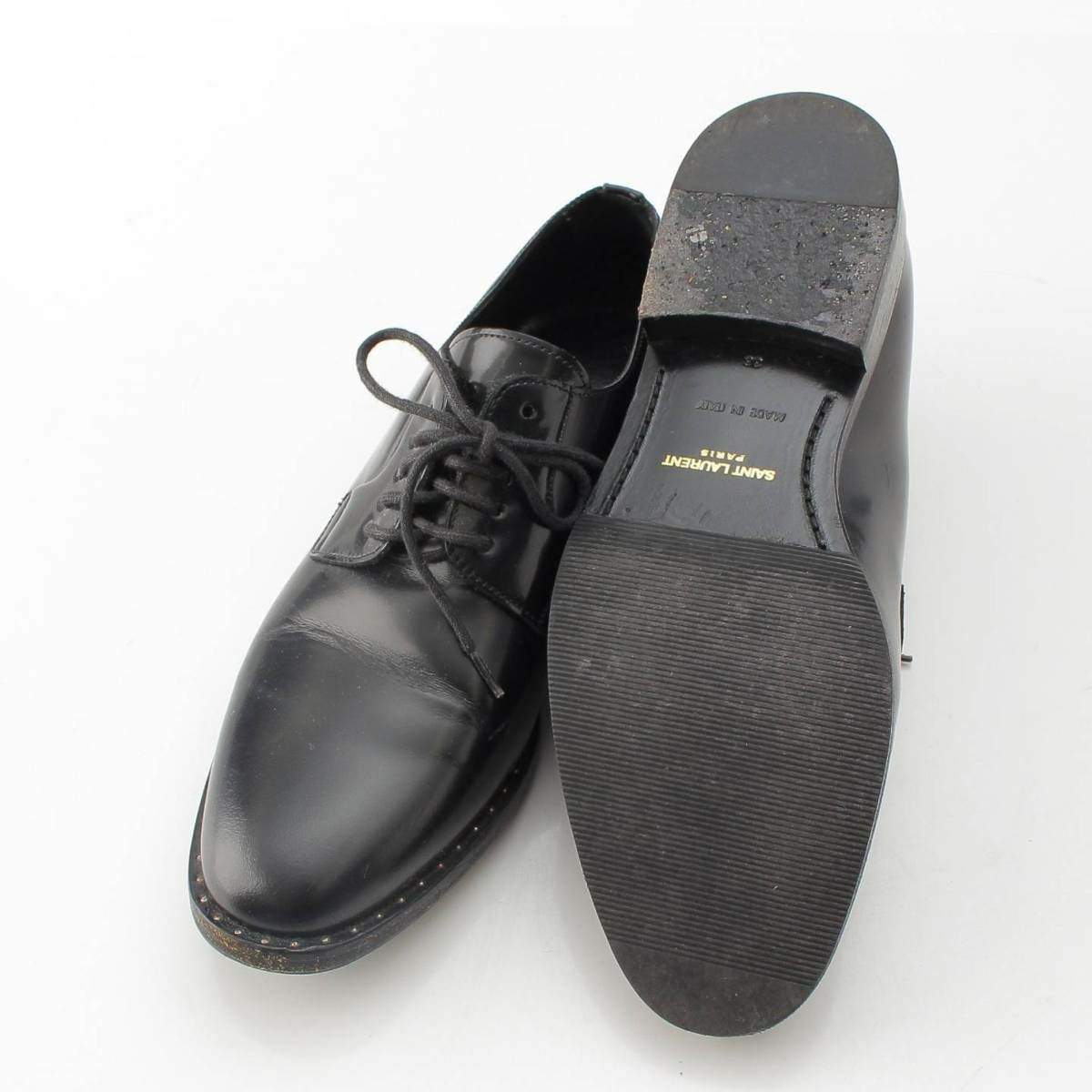 サンローラン SAINT LAURENT レザー スタッズ プレーントゥ ビジネス レースアップシューズ ブラック 36