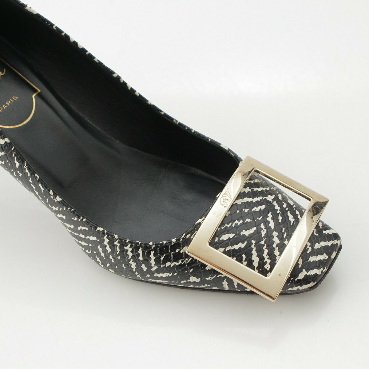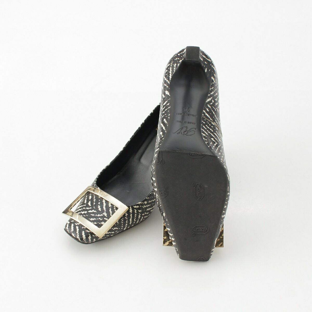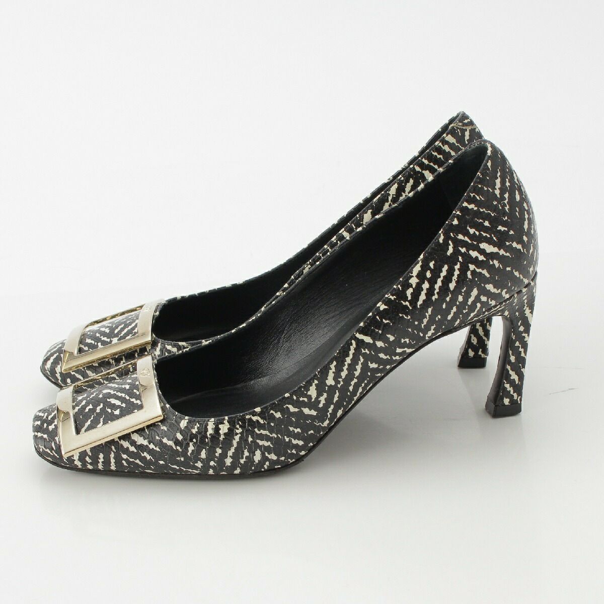 ロジェヴィヴィエ パイソン型押し スクエア トゥ バックル ヒール パンプス ゼブラ 34【中古】【正規品保証】
