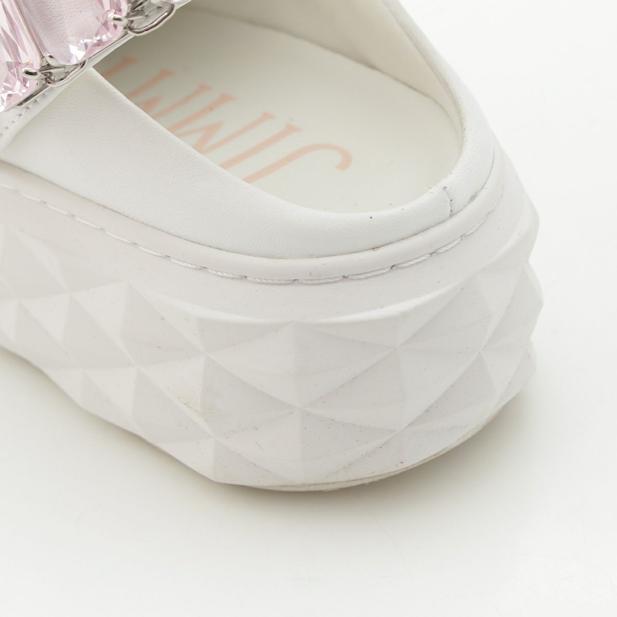 ダメージ箇所: アウトソール:スレ・汚れあり インソール:汚れあり かかと・かかと裏地:スレ・汚れあり アッパー:シワ・汚れあり ロゴ金具:キズあり ビジュー下:汚れあり、