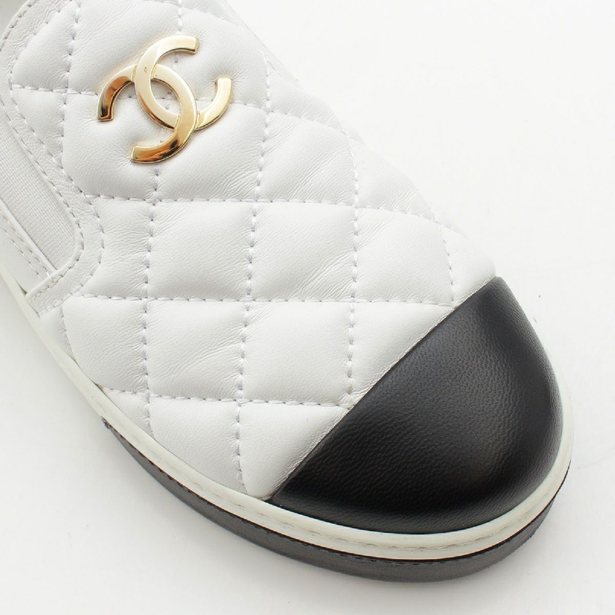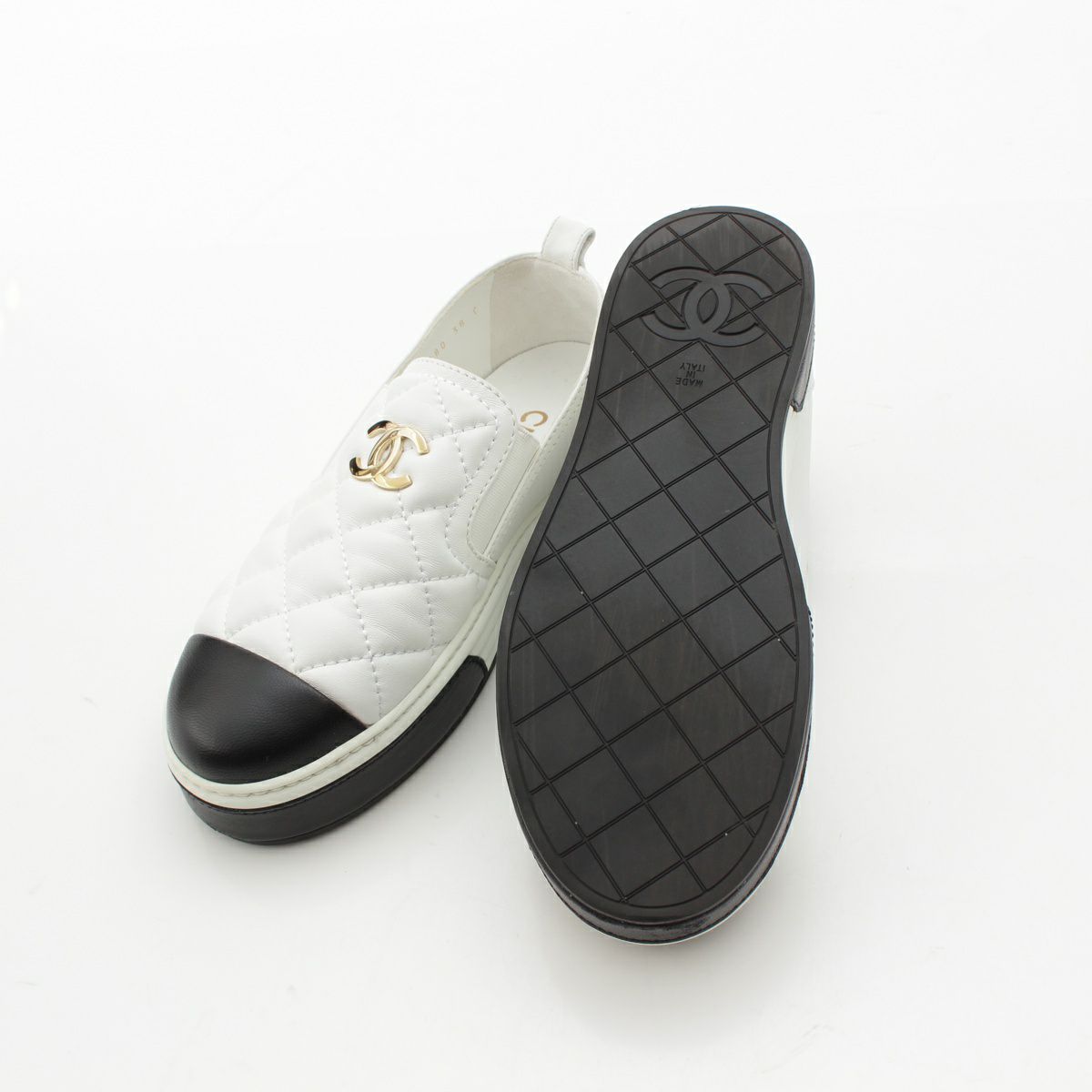 シャネル 23P レザー マトラッセ ココマーク バイカラー スリッポン スニーカー シューズ G39180 ホワイト ブラック 38