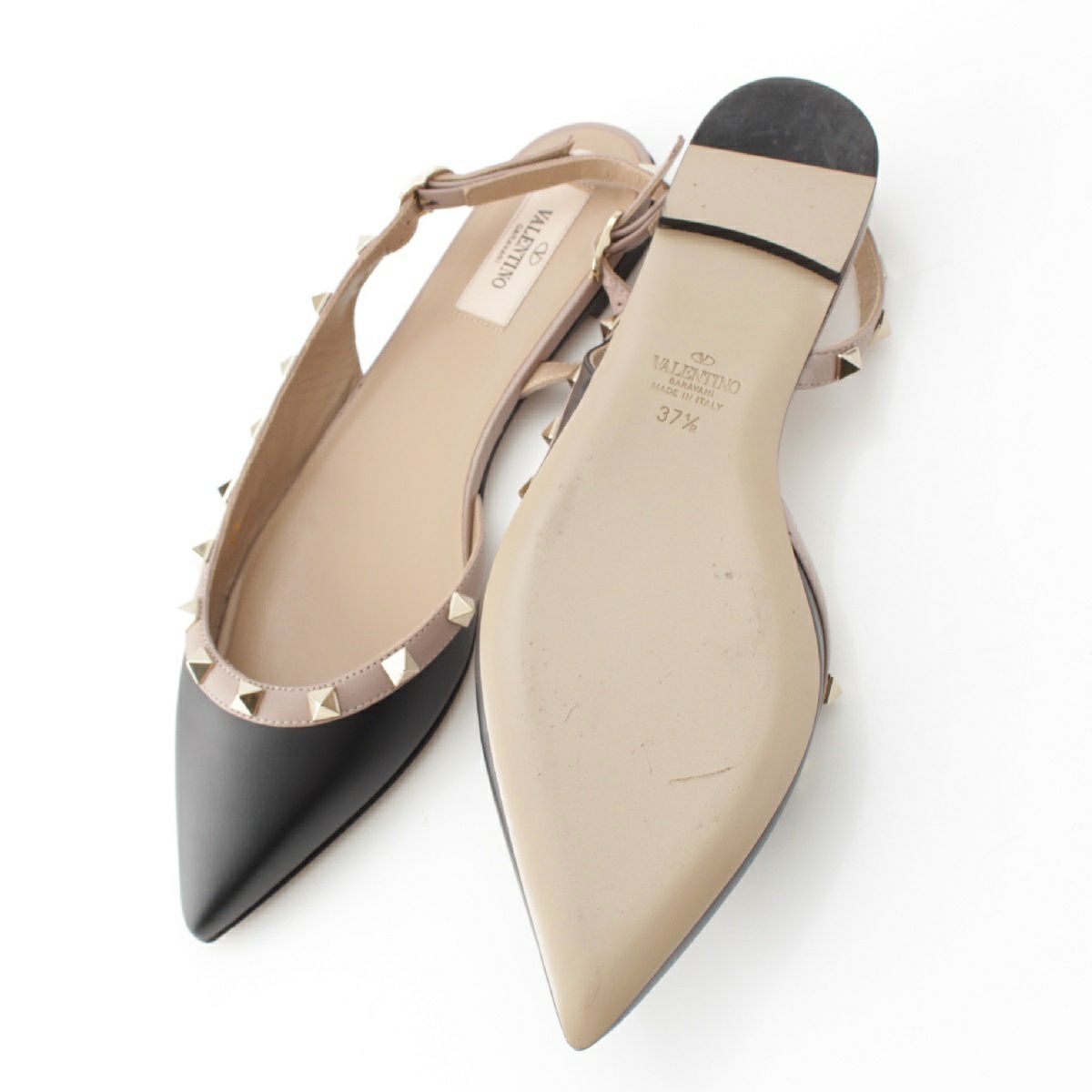 ヴァレンティノ ロックスタッズ バックルストラップ フラット パンプス ブラック 37 1/2